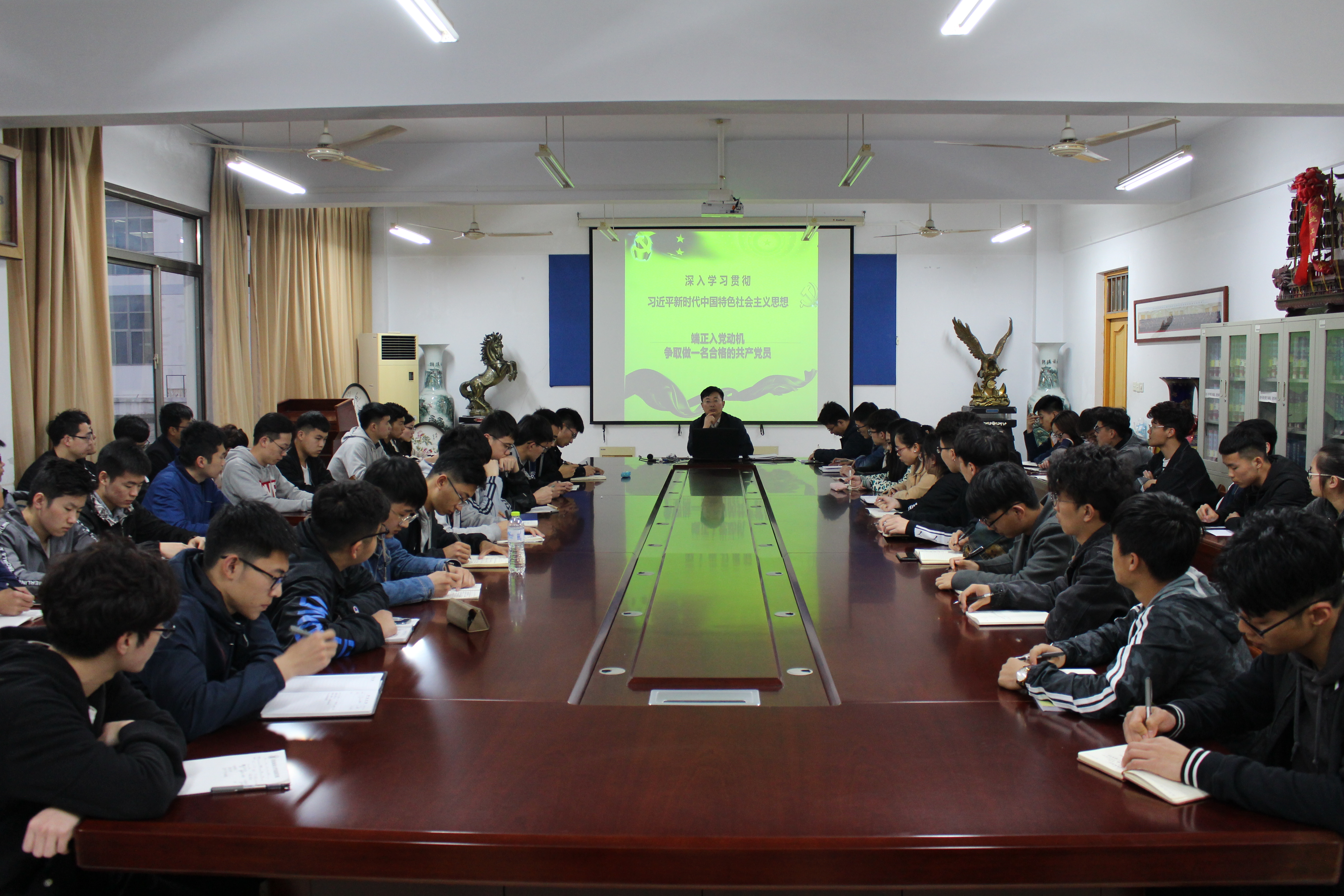 党委副书记姜鲁平为党员发展对象和入党积极分子上了题为《深入学习贯彻习近平新时代中国特色社会主义思想》的党课。他强调发展对象和入党积极分子集中学习培训是每一位要求进步同学的必修课程,是接受党的教育的极好时机。同学们应珍惜机会,认真学习习近平新时代中国特色社会主义思想和党的十九大精神,提高政治站位,树牢“四个意识”,坚定“四个自信”,做到“四个服从”;严格要求自己,进一步明确党员标准,加强党性锤炼,端正入党动机,争取早日加入党组织。