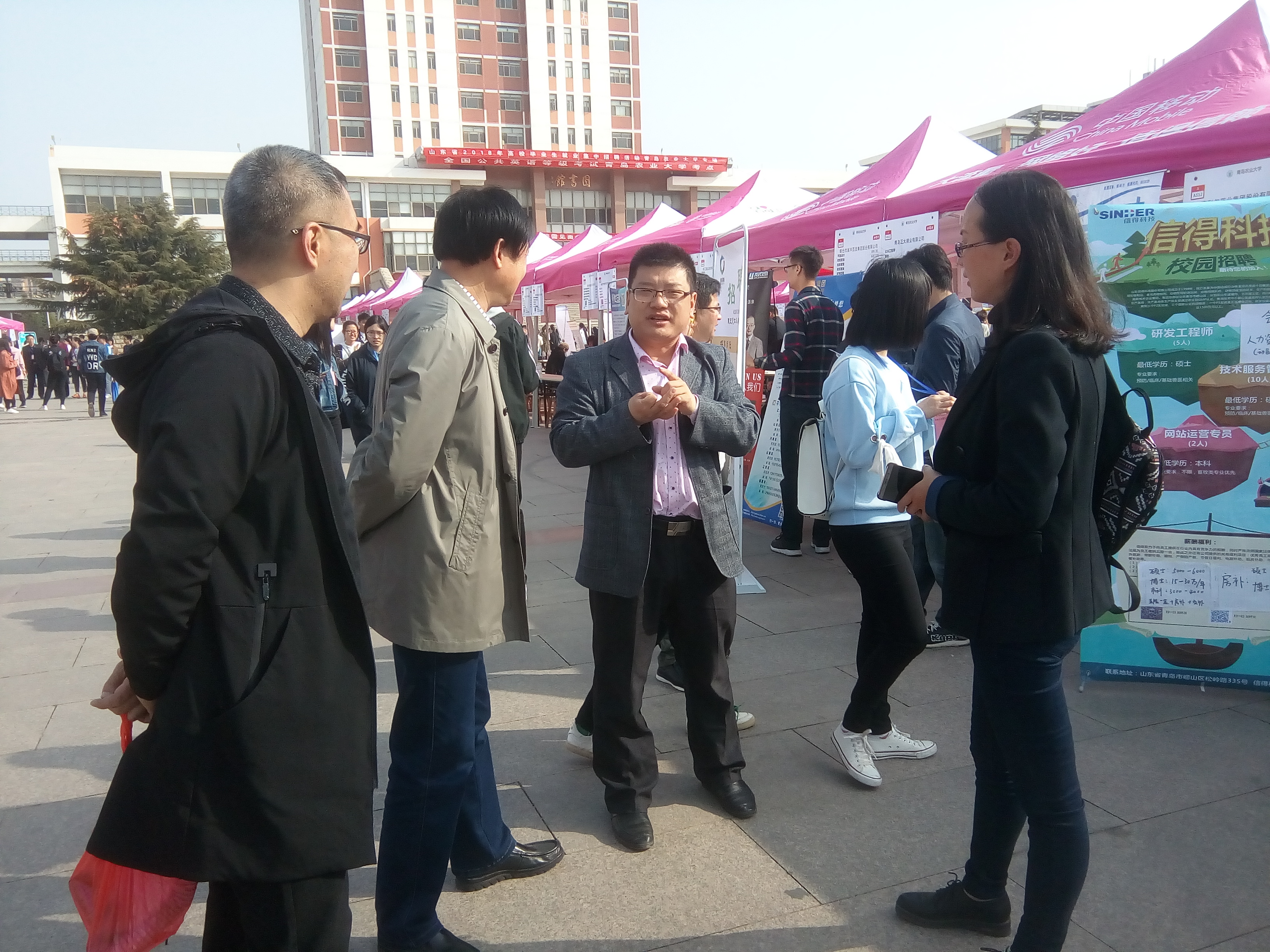 3月31日,山东省2018年高校毕业生就业集中招聘会暨青岛农业大学2018届毕业生春季大型供需见面双选会在虹子广场顺利进行。青岛农业大学园艺学院党委书记刘培利,党委副书记王春晓,分团委书记刘燕杰走访招聘会,实地考察本院毕业生受聘情况。