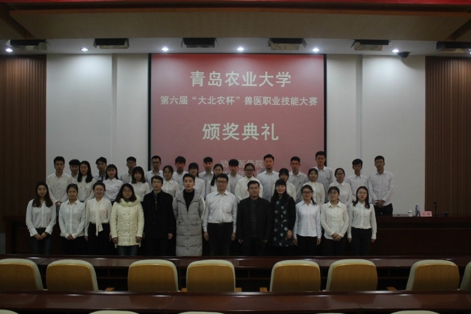 12月24日,青岛农业大学第六届“大北农杯”兽医职业技能大赛颁奖典礼在学术会馆第二报告厅举行。典礼由辅导员王洋主持,大北农集团养殖事业部创业人才中心经理杨涛、人力专员徐宁,动物医学院党总支副书记徐以师、本次大赛指导老师张启迪、刘文华出席,全体大北农比赛参赛者参加。