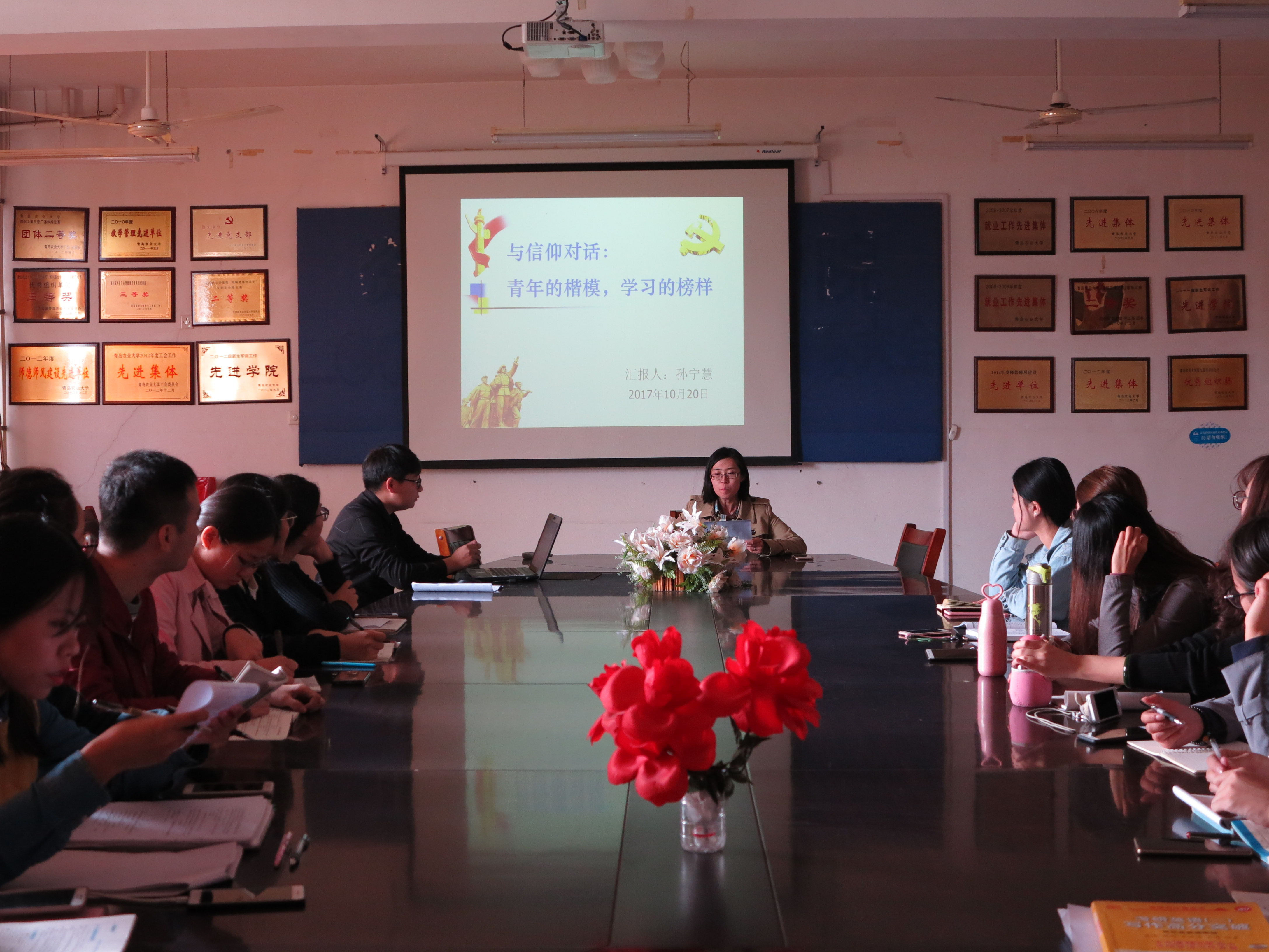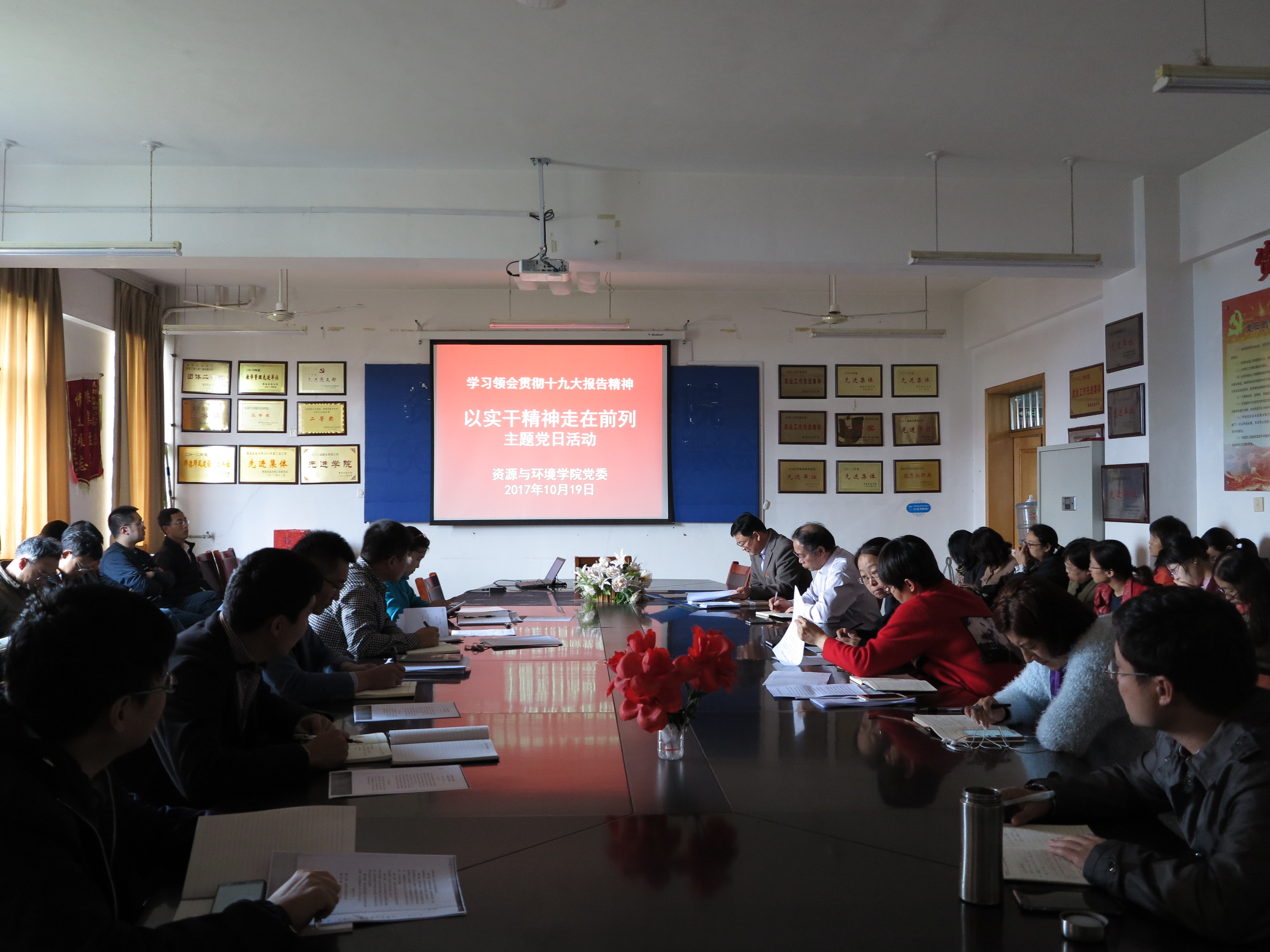 10月17日、10月19日,资环学院党委先后召开党委委员全体会议和全体教工党员会议,研讨基层党建工作并部署学习践行十九大精神系列主题党日活动。本次党建研讨会的主题是“疏通党建脉络,筑牢党建根基”。系列主题党日活动的开展主要围绕 “学理论提素质”、“亮身份做表率”、“明职责懂党务”等三个层面展开,引领全院党员以实干精神走在前列,以实际行动向党的十九大献礼。
