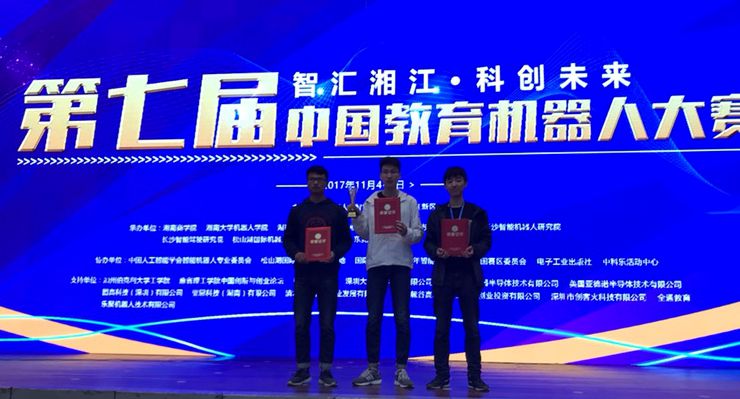 2017年第七届中国教育机器人大赛全国总决赛共有来自国内100多所院校,1500多支代表队,其中绝大部分参赛队伍来自985和211高校。经过四天的作品路演,答辩以及现场演示操作,最终取得第七届教育机器人大赛(机器人创意设计与制作)国家特等奖和国家二等奖。