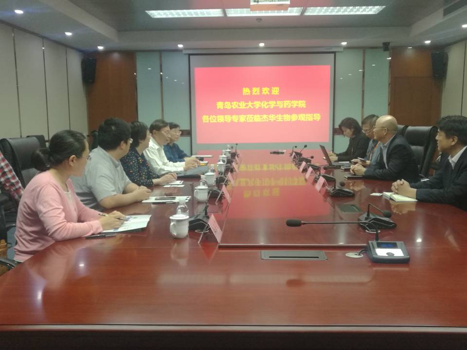5月18日,为深化校企合作,促进产学研结合,贯彻落实中央和省新旧动能转换和乡村振兴有关文件精神,青岛农业大学化学与药学院党委书记梁安波、院长曲宝涵、党委副书记史雪辉、团委书记王海霞及正科级辅导员田保玲一行6人赴杰华生物技术(青岛)有限公司进行考察交流。