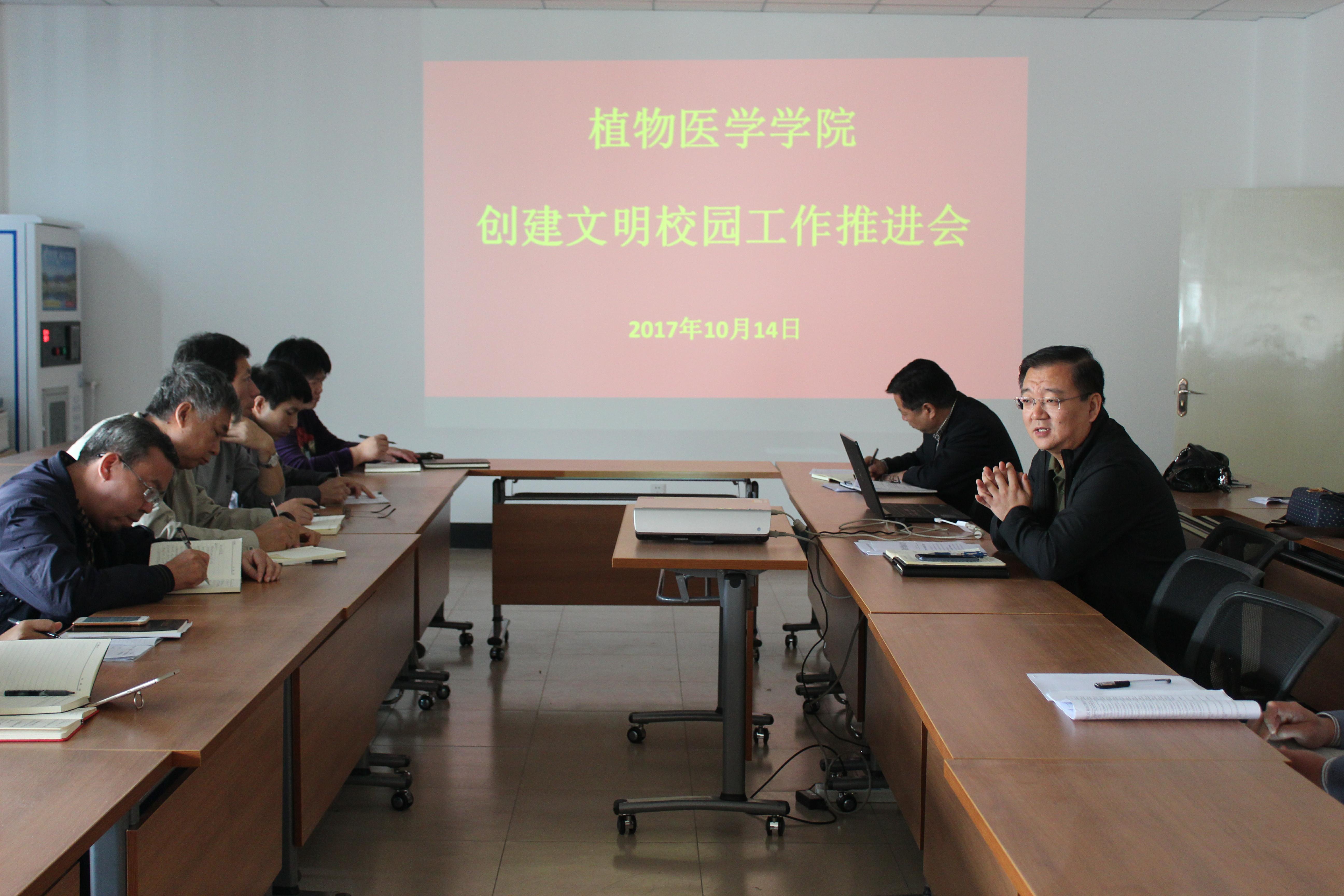 为全面落实学校关于创建文明校园活动的工作部署,充分调动广大教职工参与文明校园创建的积极性,10月14日,植物医学学院在N406召开教师层面创建文明校园工作推进会,全体教职工参加,会议由学院党总支书记袁忠林主持。