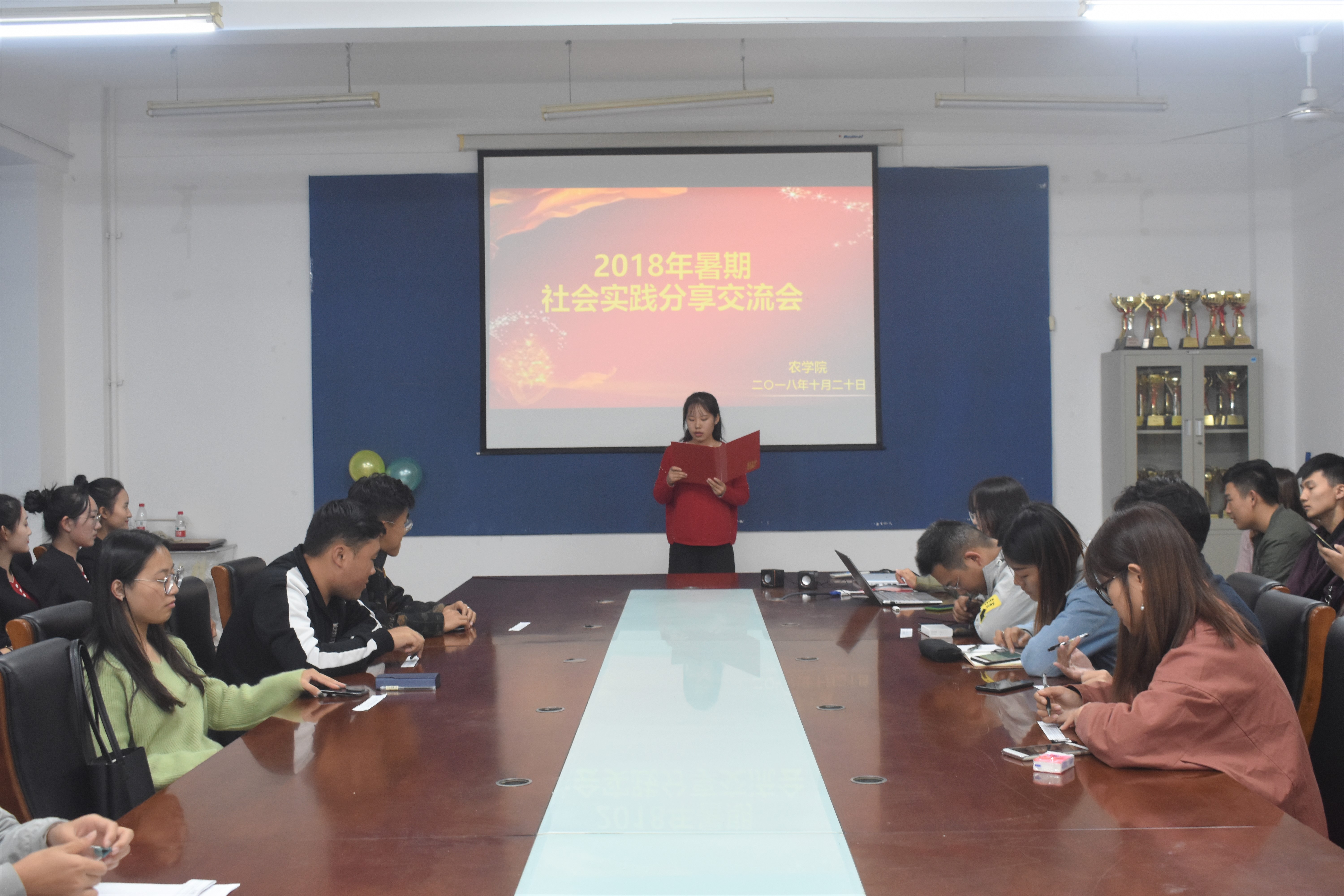 为总结2018年暑期社会实践成果,指导同学们完成暑期社会实践后续工作。10月20日,农学院开展“2018年暑期社会实践分享交流会”,辅导员谷元兴、刘宁,学生会主席、副主席、各部部长及2017、2018级学生代表参加本次会议。