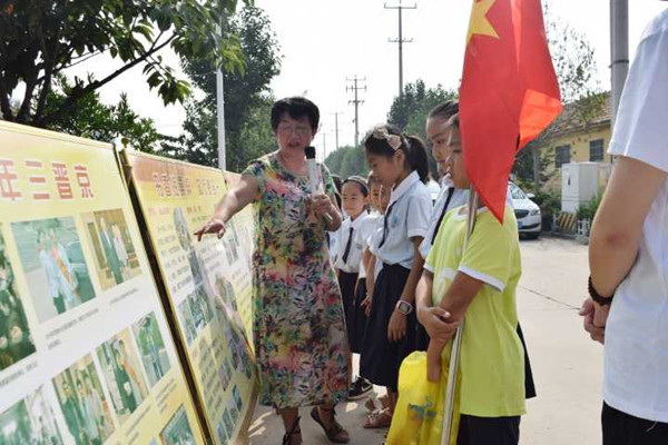 单美华老师为孩子们介绍宝德书院。通讯员 毛艺霖 摄