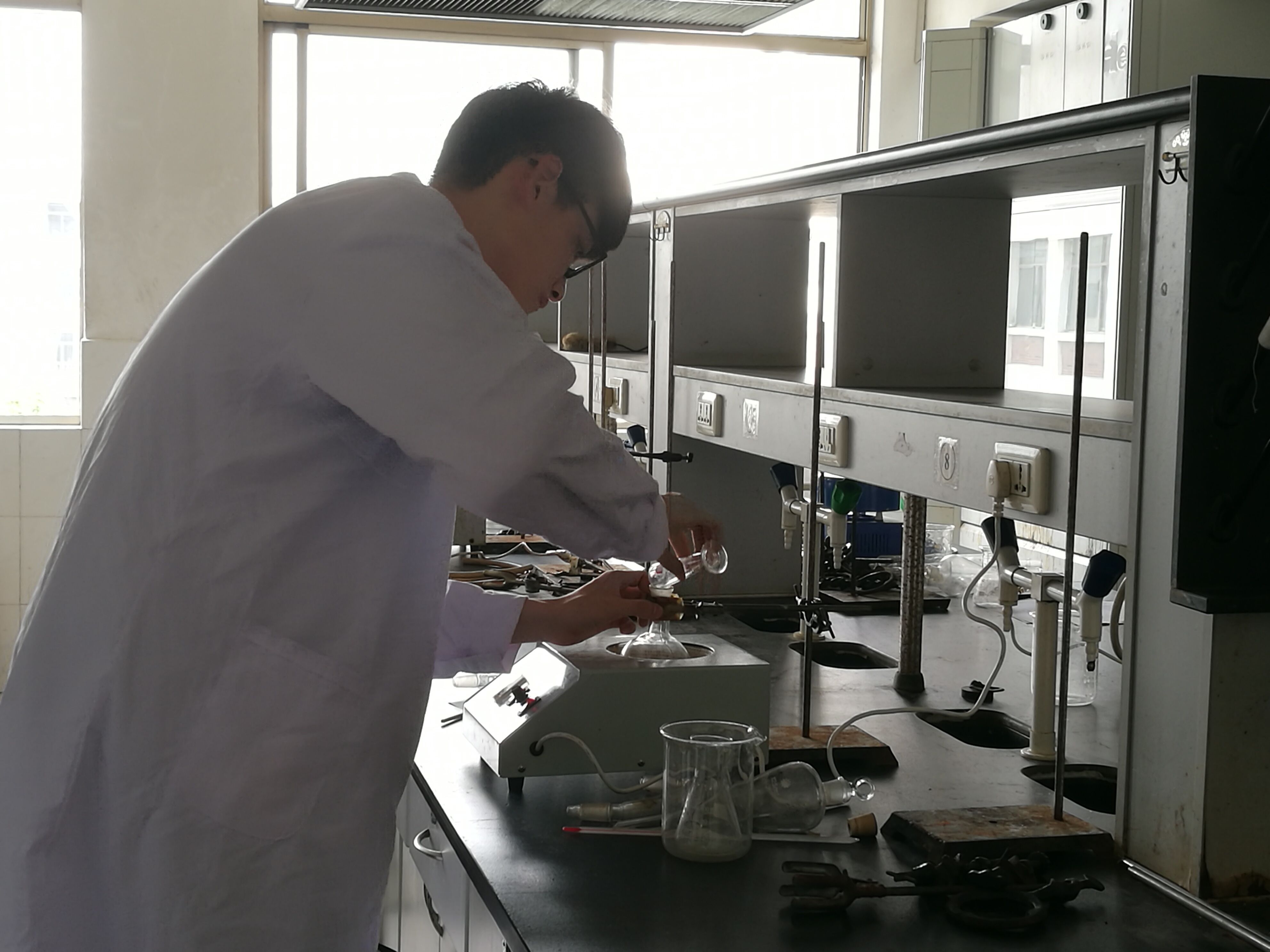 决赛中,参赛选手通过抽签的方式确定实验项目,随机分为两组分别进行“无机及分析化学”和“有机合成化学”实验竞赛。选手到达指定位置后,监考老师发放试题,并讲解注意事项;过程中,选手仔细阅读所给实验原理及步骤,按照实验步骤规范操作,认真观察并记录实验现象。竞赛本着公平、公正的原则进行,监考老师细致观察选手的每一步操作,科学判断实验操作的正确性,公正公开打分。决赛结束后,根据选手初赛及复赛两轮比赛按比例计算出总成绩,制药工程1501班陈琳琳等人获得一等奖。根据竞赛结果,针对专业组三年级的学生,以此作为主要依据,推荐优秀学生参加“山东省第十届大学生化学实验技能大赛”。
