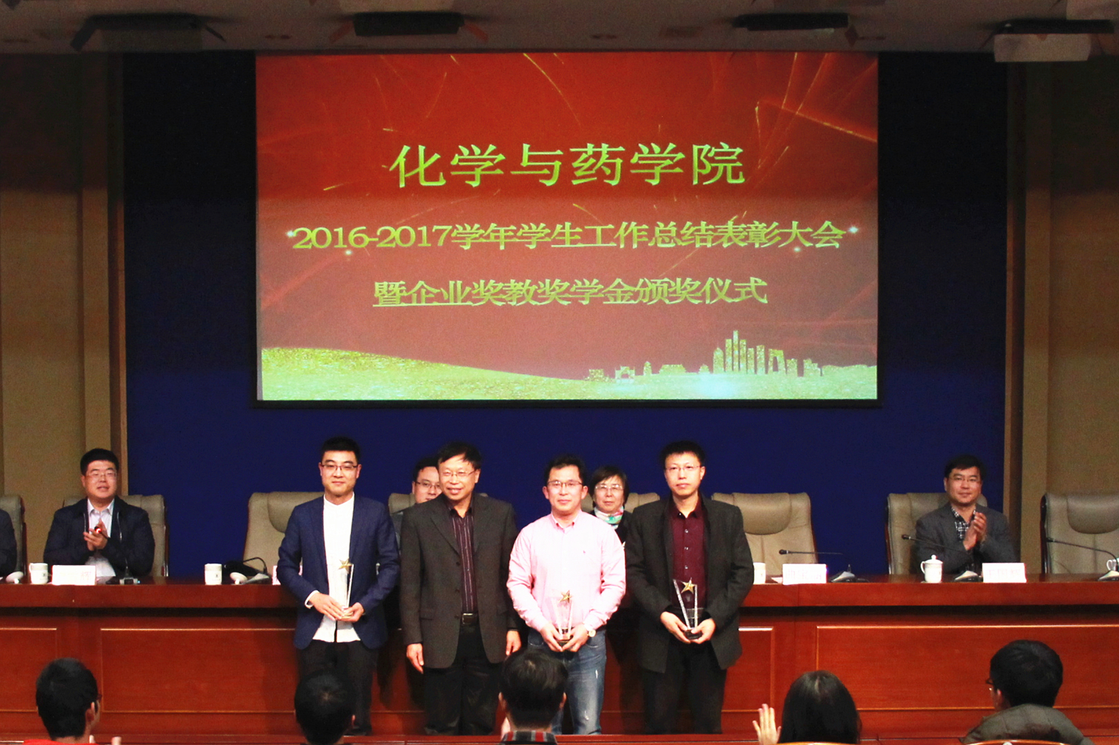 仪式最后,与会领导老师和企业代表为先进集体、先进个人和企业奖学金获得者颁奖,学院院长曲宝涵为企业颁发捐资助教贡献奖奖杯来感谢企业对化药发展的支持,学生工作总结表彰大会暨企业奖教奖学金颁奖仪式顺利结束。