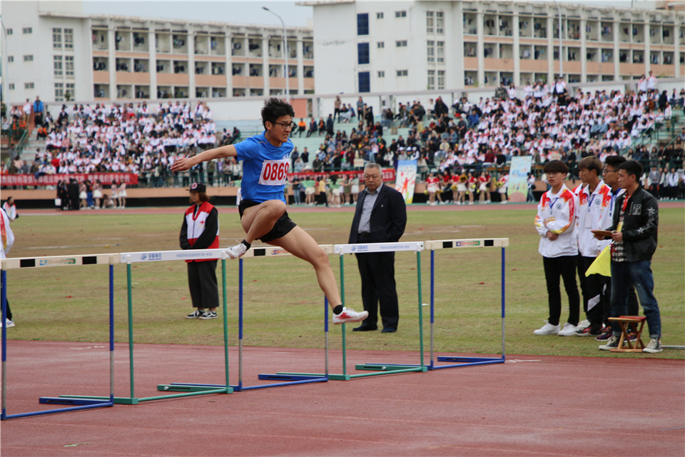 四百米栏决赛中,学院运动员李桐和冯传玺如纹着蓝色斑纹的猎豹,一次次跨栏如腾空而起,分别斩获第一名和第三名的好成绩。