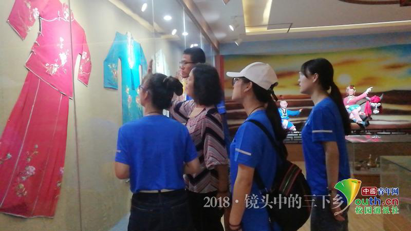 王美霞副团长与队员一起观察服饰搭配等。中国青年网通讯员 张玉静 摄