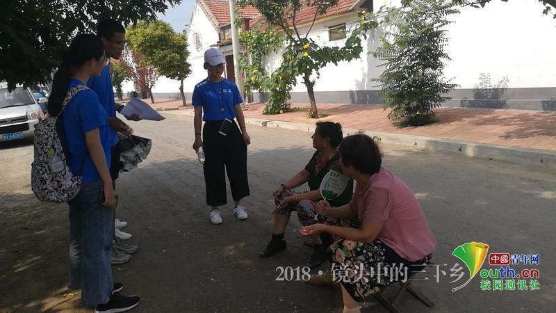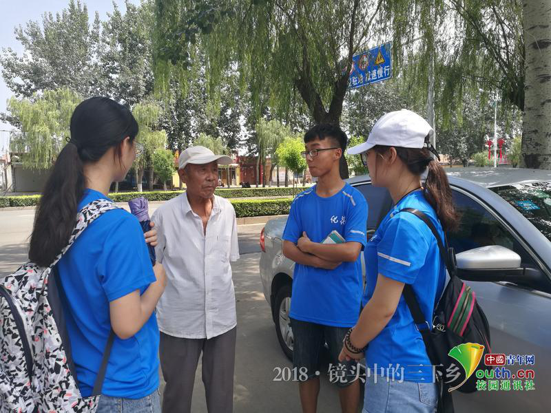 队员与村民进行调查采访。中国青年网通讯员 张玉静 摄