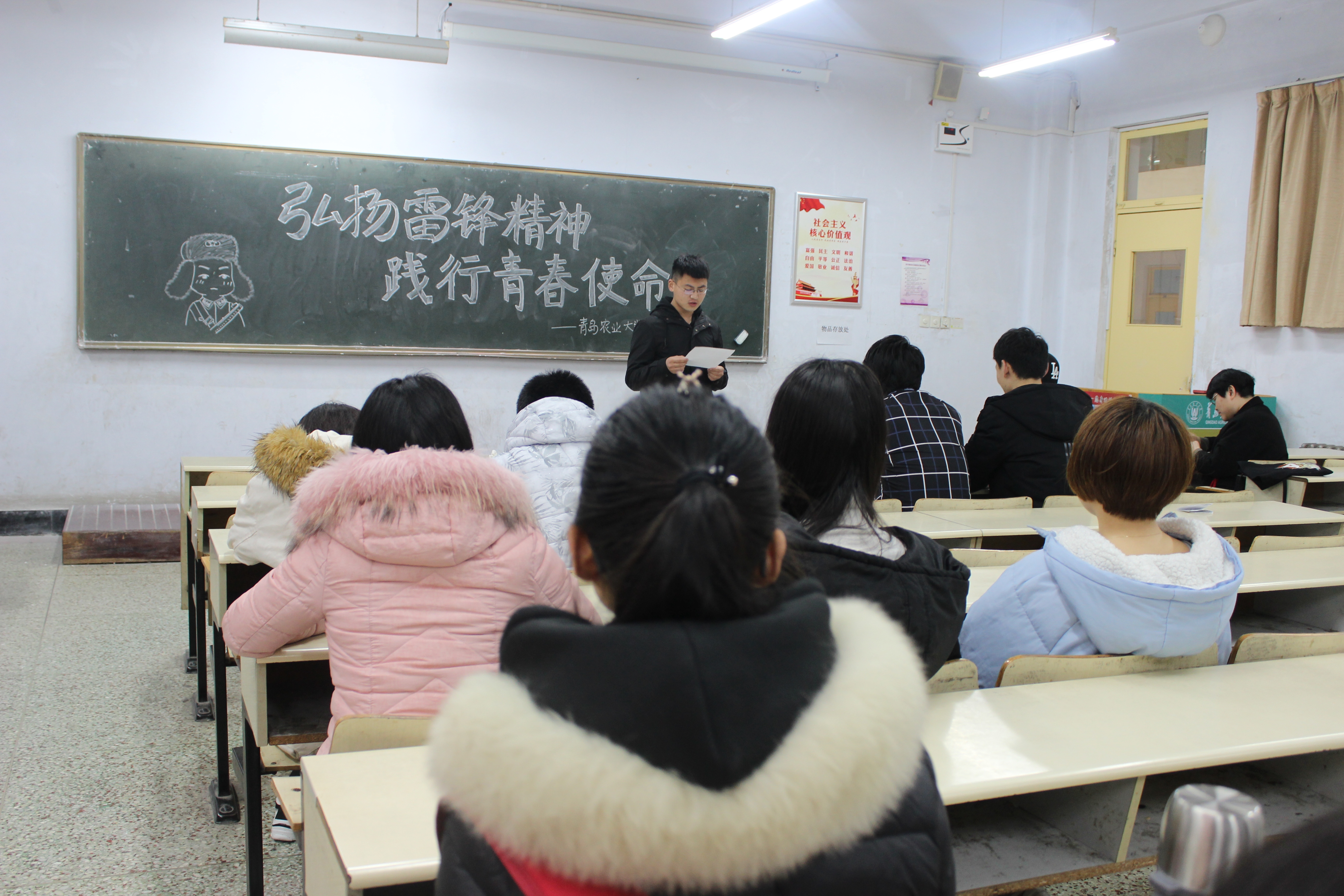 随后,同学们围绕“新时代如何弘扬雷锋精神”各抒己见、畅所欲言。他们从自己的学习和生活的实际出发,紧密联系广大学生,提出了许多关于弘扬雷锋精神的建议与意见。大家纷纷表示,将坚定理想信念、牢记使命责任、自觉崇德向善,像雷锋那样大力弘扬文明新风,促进团结友爱、诚实守信、助人为乐、见义勇为的良好社会风气的形成,做中华民族传统美德的传承者、以实际行动书写传承和弘扬雷锋精神的时代新篇。