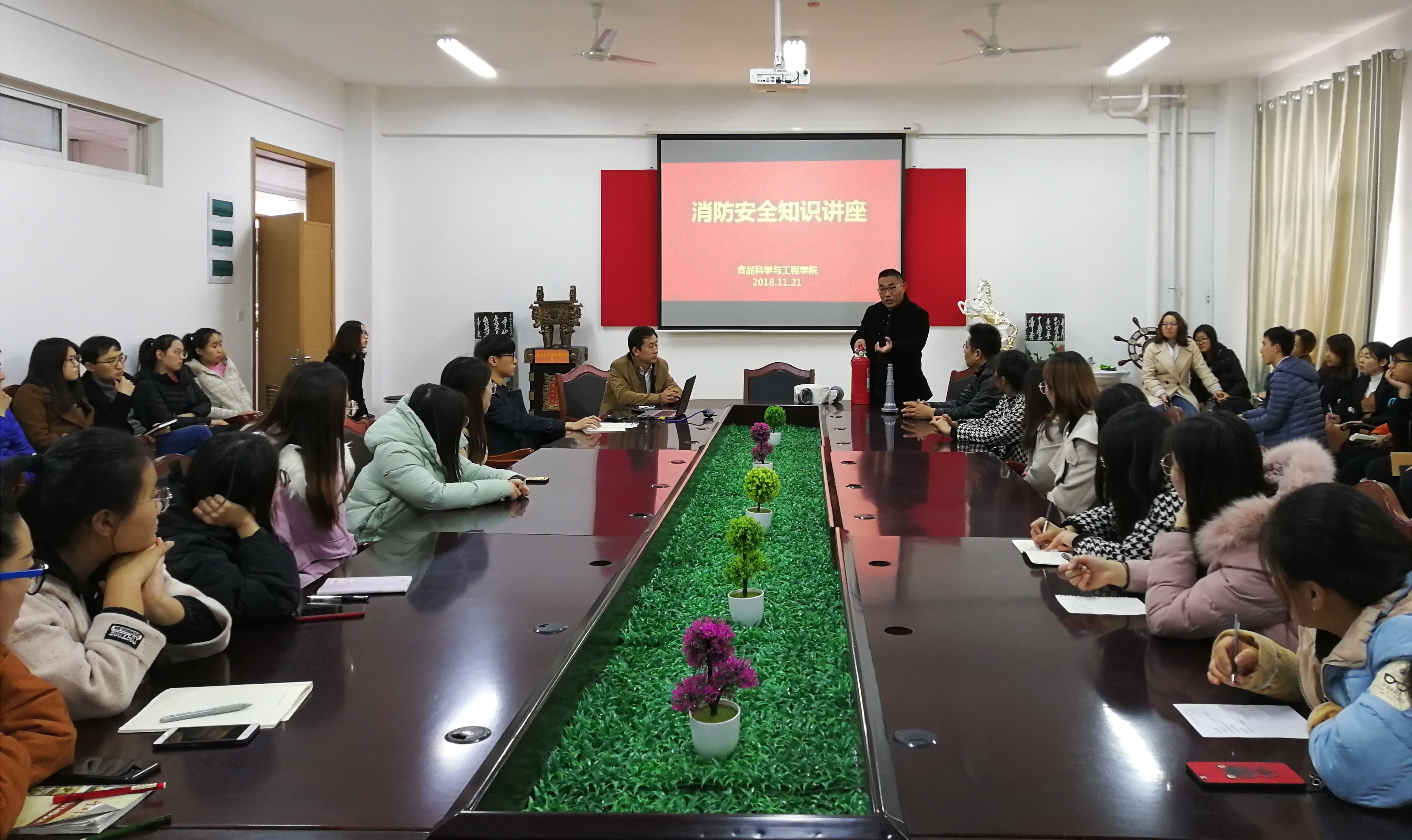 2018年11月21日,青岛农业大学食品科学与工程学院于食品楼310会议室举办消防安全知识讲座,邀请保卫处程致远老师为学院全体研究生进行消防安全培训。讲座由学院党委副书记宋伟主持。