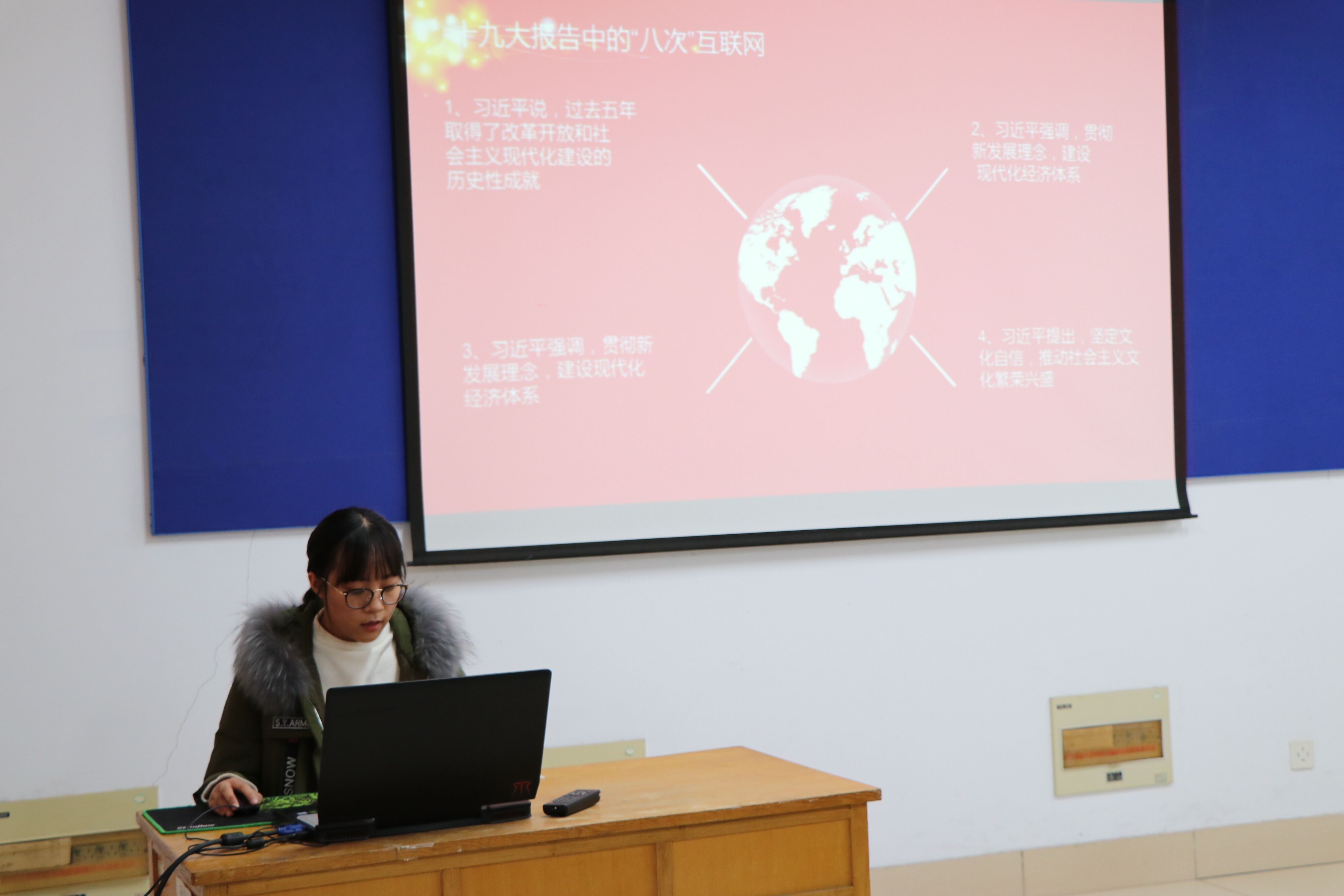 “青年兴则国家兴,青年强则国家强。”习近平同志在党的十九大报告中对青年一代的要求和殷切期盼,声声入耳、直击肺腑,反响热烈。举办此次比赛,旨在要求广大青年团员结合自身情况,畅谈如何在日常学习生活中更好地认识十九大精神并将之运用到实际当中去。因此,比赛中,各选手参赛的主题也围绕此点灵活开展。他们通过PPT与讲述结合的方式进行微团课讲解,围绕讲课主旨,结合日常学习、比赛、活动的开展,运用生动的语言、各具特色的幻灯片画面,以小见大,见微知著,给听众带了一场视听盛宴。经过激烈角逐,有十位选手脱颖而出进入决赛。
