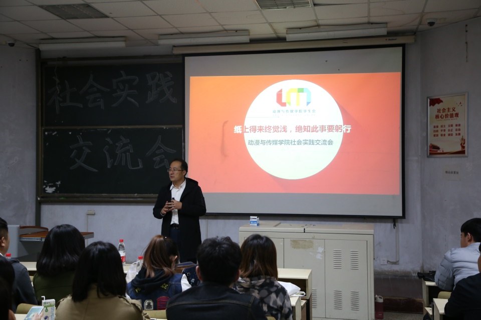 11月3日,动漫与传媒学院在教学区举办了社会实践交流会,会议由学院分团委书记王宏儒主持召开、实践队全体队员和学生代表参加此次会议。