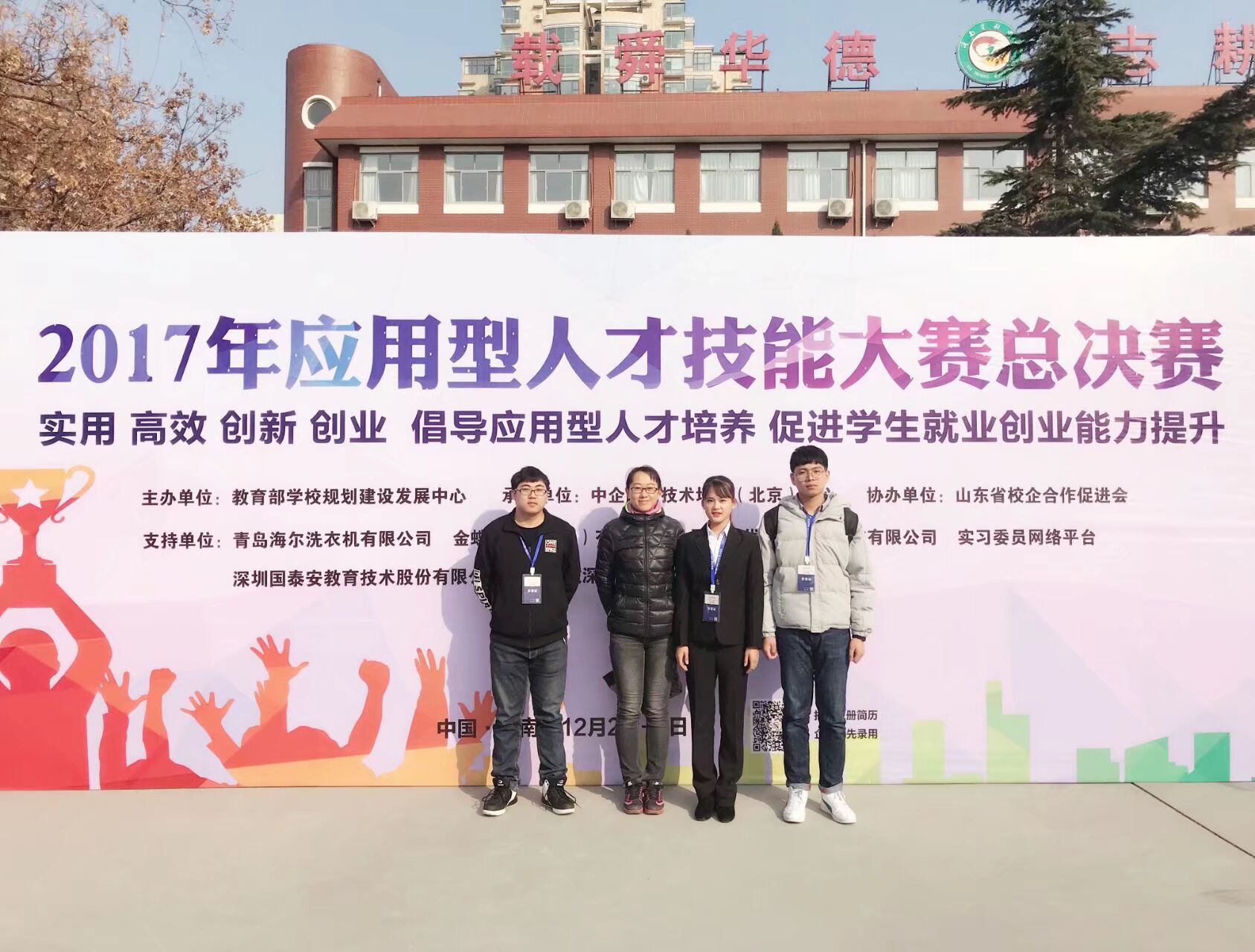 12月1日至3日,2017应用型人才技能大赛全国总决赛在山东济南举行,由机电工程学院王红提老师带队,王方艳老师指导的参赛队伍获得国家二等奖。