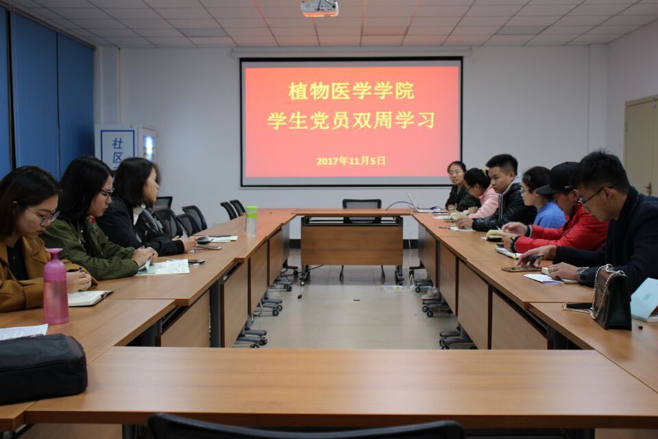 为进一步提高党员的治理论素养,加强党员对党的十九大及新党章的学习,11月5日,植物医学学院于N406举行学生党员双周学习活动,辅导员王丽静出席本次会议,全体学生党员参加。