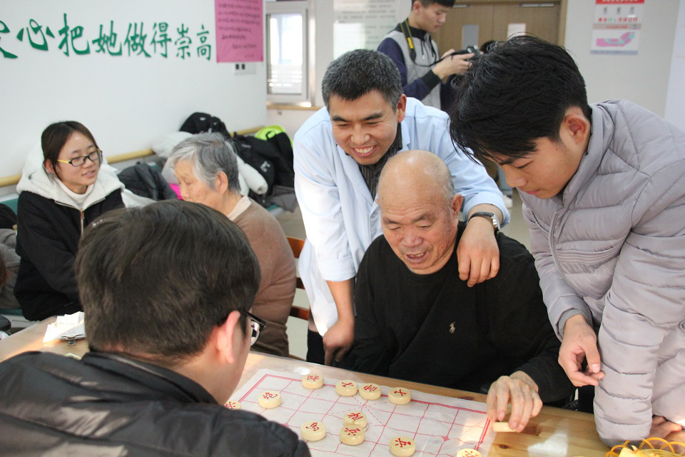 当颐德康复医院的老人们看到大学生志愿者们到来,欢喜之情溢于言表,拉着志愿者们的手亲切的谈起家常,询问学校和家里的情况。志愿者们也关切地问起老人们的身体状况和生活起居,表示希望能经常代替老人们的儿女尽一下孝心。志愿者们陪同老人们下棋、聊天,帮老人们捶背、揉肩、洗水果、打扫卫生。张燕硕同学为老人们吹奏了横笛曲《高山青》,唤起了老人们对往昔岁月的回忆,也博得了热烈的掌声。在欢笑声中,老人们与志愿者们度过了一个其乐融融的下午。