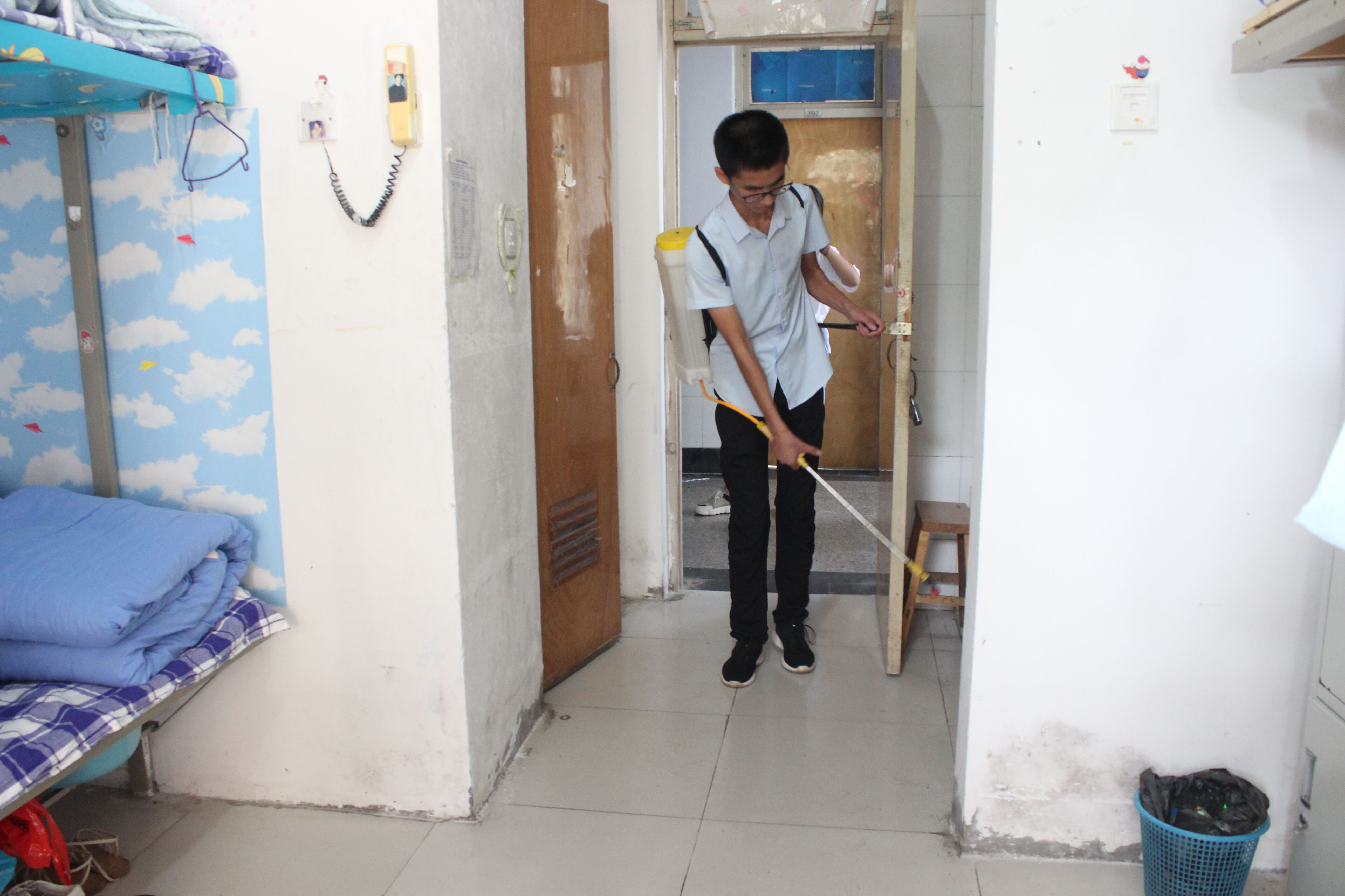 炎热的暑假一瞬而过,尘封已久的宿舍极易滋生细菌,青岛农业大学外国语学院于8月30日对学院全体学生宿舍进行全面的消毒工作,抑制细菌滋生,预防疾病的发生。