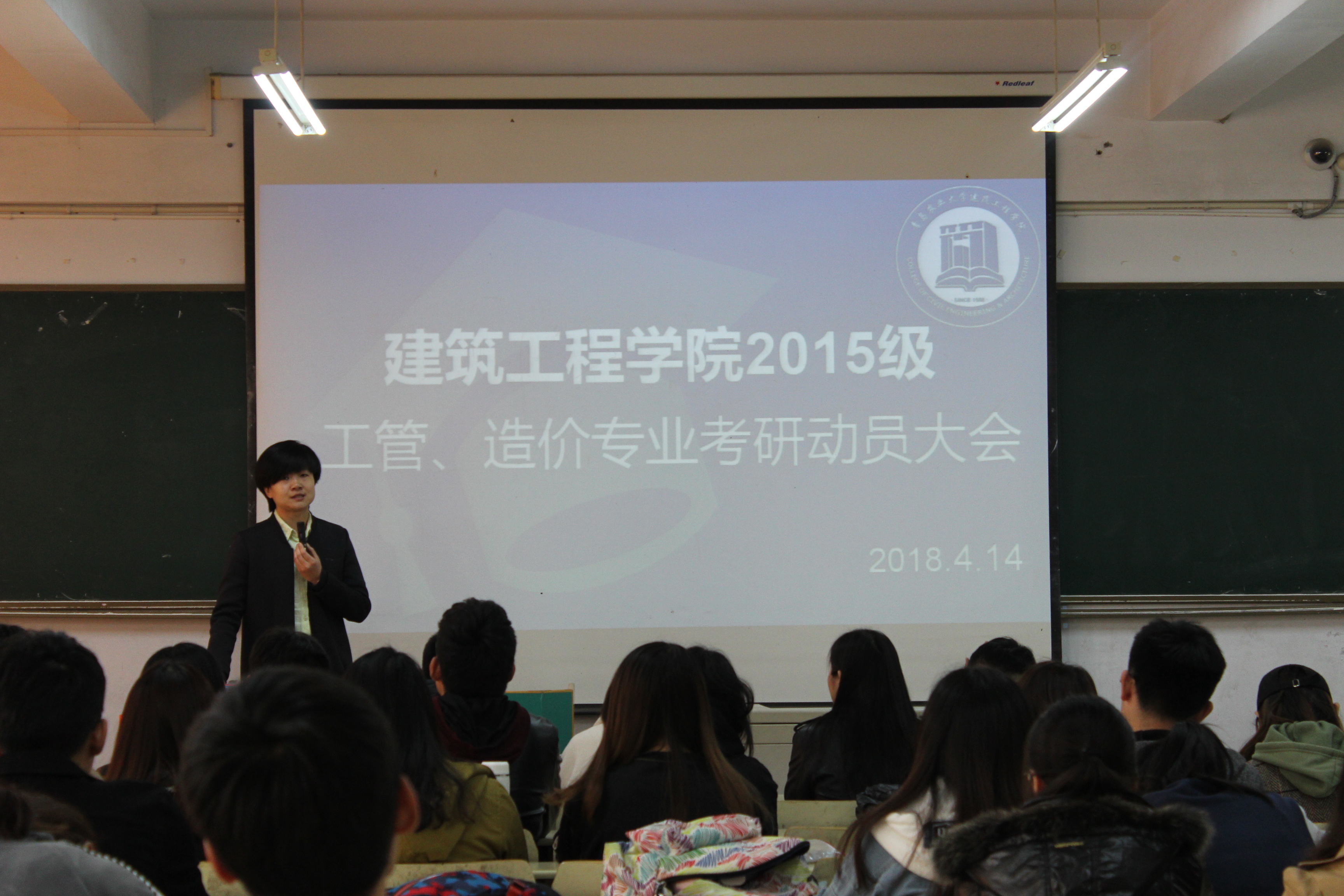 为调动2015级学生考研积极性,让同学们更好的挖掘自身潜能,把握深造机会,青岛农业大学建筑工程学院4月14日于教学楼召开了工程造价和工程管理专业考研动员大会,会议由学院工程管理教研室主任刘妍老师主持并主讲,邀请部分考研成功的学生嘉宾出席,造价、工管2015级全体学生参加。