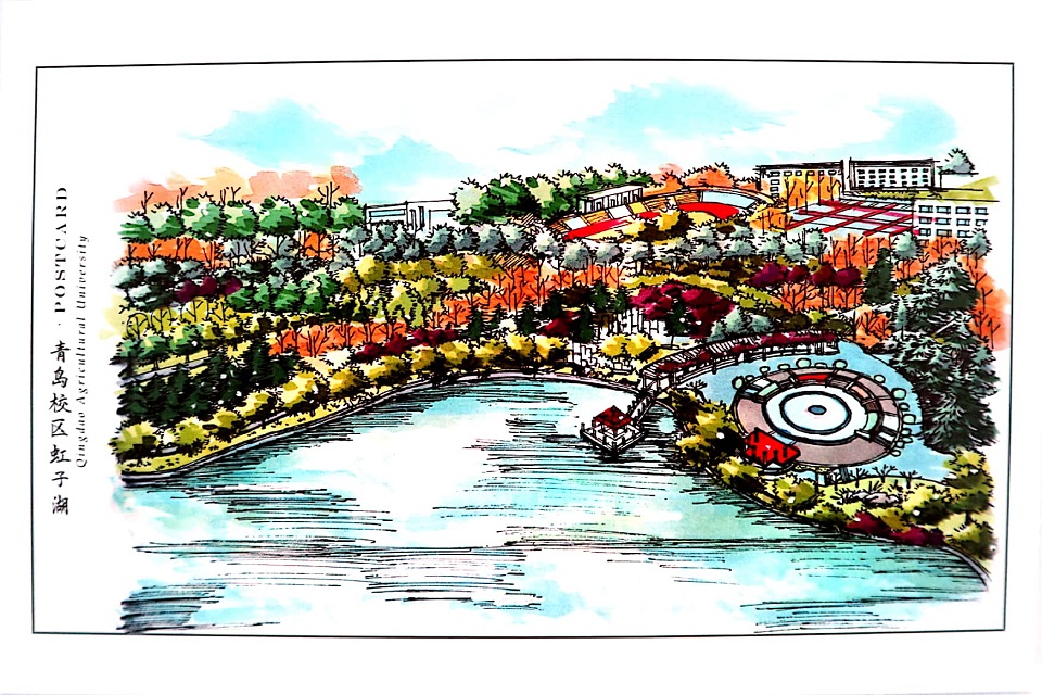 近日,应青岛农业大学校友办之邀,园林与林学院学子精心绘制了一套校园风光专题明信片,他们利用专业技能,手绘出虹子广场、虹子湖、莱阳校区等十三处标志性建筑,制作成精美的明信片,成为颇受师生喜爱的校园文化产品。