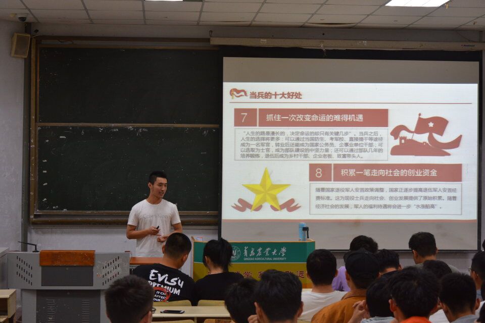 为了贯彻落实《关于做好2019年学生入伍报名工作的通知》文件要求,帮助广大青年学子了解征兵相关政策,鼓励优秀青年投身军营。青岛农业大学国际教育学院成立学院征兵工作领导小组,开展了多种形式的征兵入伍宣传活动。