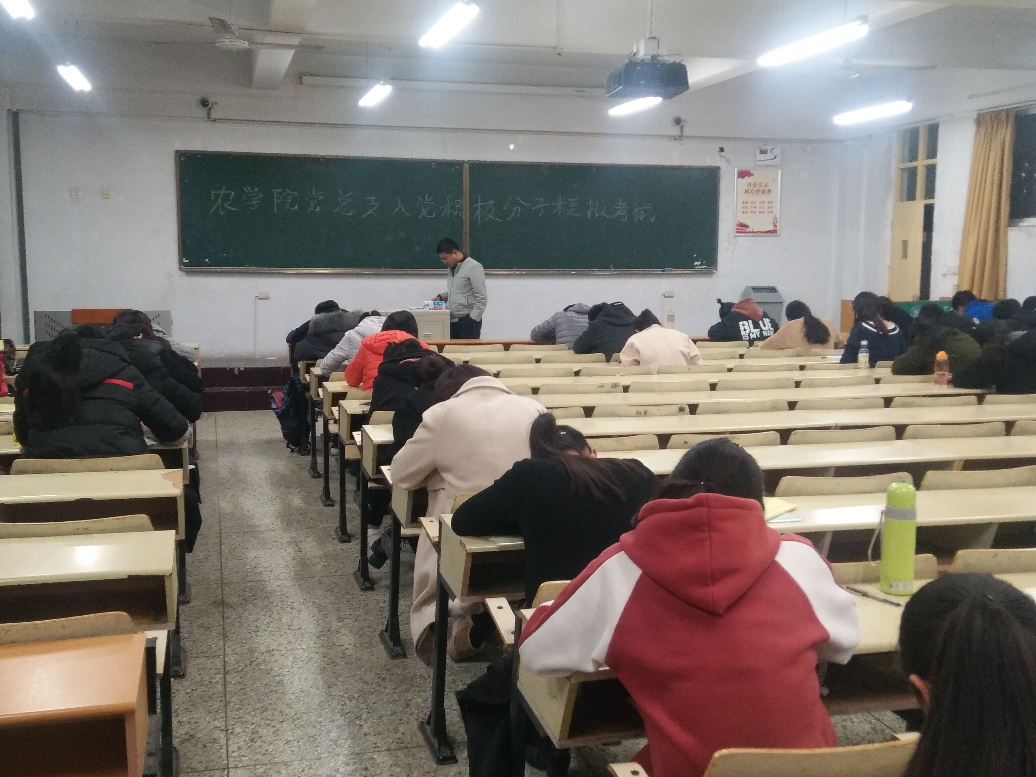 11月16日,农学院党总支在教学区举行第二十一期入党积极分子和党员发展对象模拟考试,本期46名入党积极分子和党员发展对象全部参加考试。院分团委书记姜涛、辅导员谷元兴及兼职辅导员李敬敬到场监考。