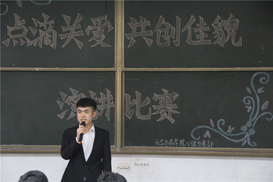 3月18日,青岛农业大学化学与药学院于教学区举办"点滴关爱,共创佳绩"演讲比赛,院学生会各部长出席并担任评委,17级全体学生积极参与。经激烈角逐,制药工程1702班姚晓芳荣获一等奖。
