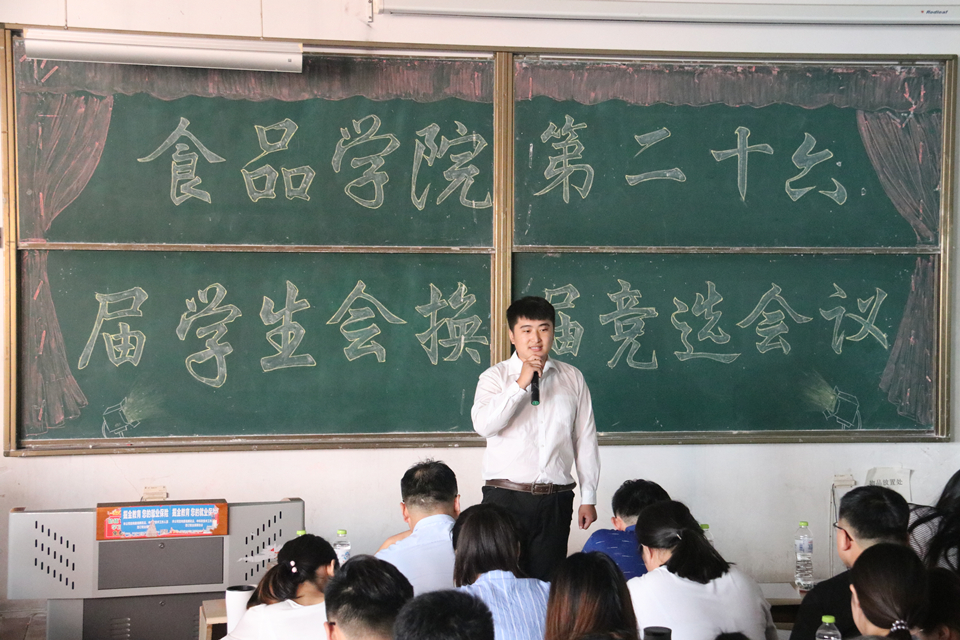 8月25至26日,青岛农业大学食品科学与工程学院第二十六届学生会换届选举大会在教学区D203教室举行。学院党委副书记宋伟,团委书记李永青,辅导员赵莹、孙晓东出席大会并担任评委。第二十五届学生会及各班级主要学生干部参加大会。