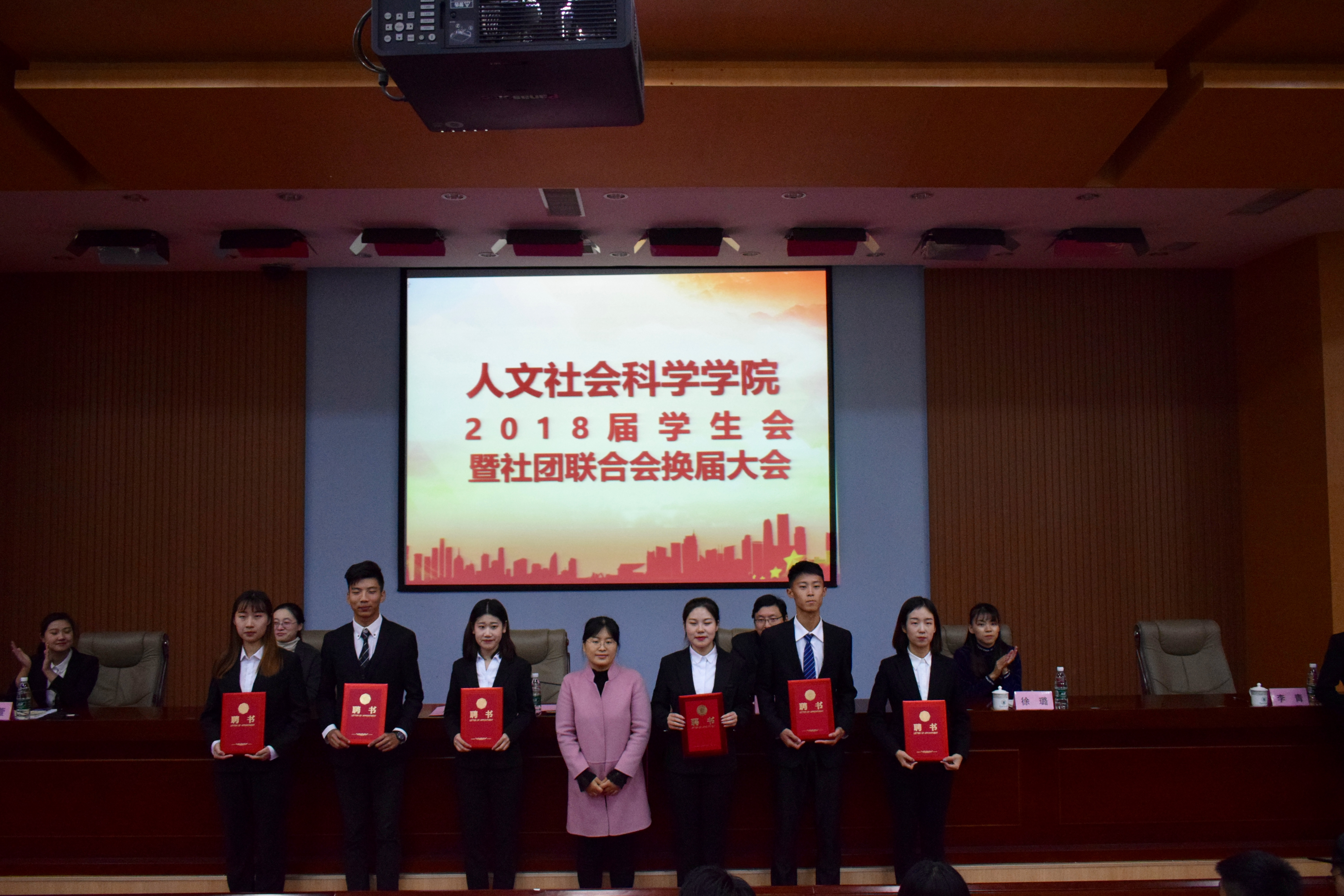 会议最后,张胜芳代表学院党总支向新当选的2018届学生会成员表示祝贺,并对新一届学生会提出三点希望与要求:第一,坚定信念,全面提升学生会工作的思想引领与价值引导;第二,严肃作风,全面提升学生会工作的凝聚力和战斗力;第三,严谨务实,全面提升学生会工作的贡献度和美誉度,由此进一步提升广大青年学生的获得感和幸福感。她希望新一届学生会在新起点上继续发扬优良传统,不断提升服务意识,发挥好桥梁纽带作用,为人文社科学院美好的明天不懈奋斗。