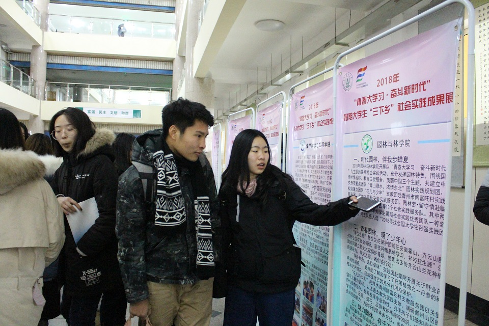 12月11日,青岛农业大学园林与林学院组织学院青马班成员参观了我校2018年“青春大学习·奋斗新时代”暑期大学生“三下乡”社会实践成果展。