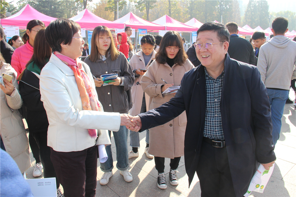 此外招聘会现场,青岛农业大学党委委员、副校长牟少岩与梁安波亲切握手,对学院领导亲临招聘会现场指导的行为表示肯定,牟少岩询问梁安波学院19届毕业生就业及考研工作的进度,梁安波认真答复。梁安波表示,化药学院未来将会不断拓展院企合作,组织学院毕业生从专业角度出发了解企业,帮助毕业生寻求专业对口企业,使毕业生能够充分发挥自己的专业特长,提高学院毕业生就业率。