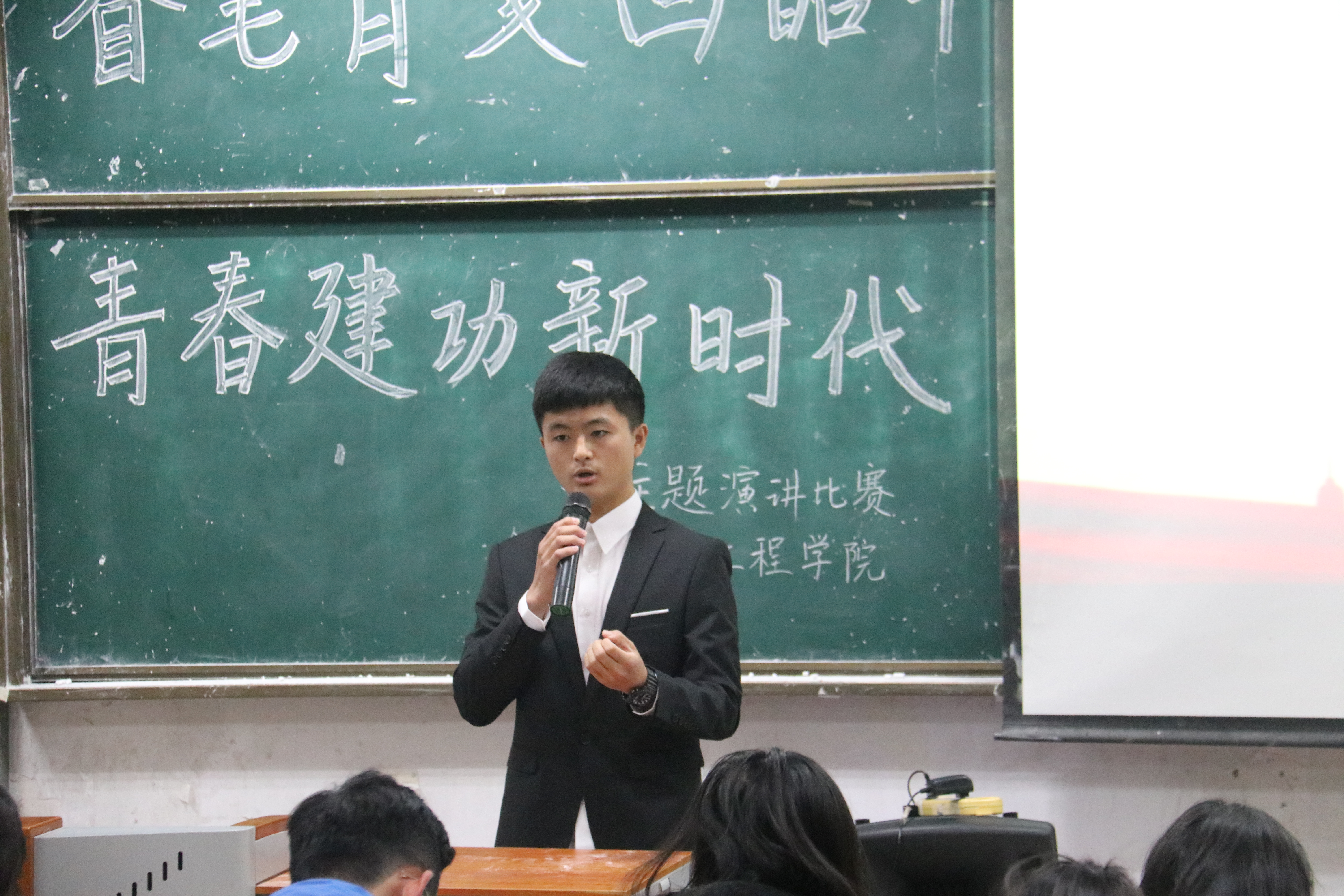 本次比赛共分为两轮。第一轮主题演讲,选手以“眷笔青笺画韶华,青春建设新时代”为主题进行五分钟内的演讲,第二轮为即兴演讲环节,选手们通过现场抽签决定演讲题目,考验选手们的临场发挥能力和知识储备。伴随着文艺部的活力开场舞,比赛正式开始。选手们根据抽签顺序依次上台演讲,其中,一号选手马骥用温厚的声音讲述了他对在抗日战争中奔洒热血的战士们默默付出的崇敬,对建国之初周总理国防建设中自信果敢的敬佩,他带领观众回顾了中国发展的精彩历程。此外,八号选手董坤瑶在第一轮比赛中以“理性爱国”为主题,以“理性是行动表达”这一观点为核心,通过周杨与韩国选手比赛后国人对韩国选手人肉搜索的事例证明理性爱国的重要性。即兴演讲环节,董坤瑶在抽到“如何应对当幻想与现实面对时的痛苦”这一题目时沉着应对,在三分钟的简短准备后,从爱情层面具体入手,提出“信命,但不认命”的观点。她表示,爱情诚可贵,生命价更高,当理想与现实背离的时候,我们要做的是寻求通往理想的道路、接近理想的方法,而不是走极端,意图迅速达到理想状态。除此之外,她还列举了包括梁山伯与祝英台、罗密欧与朱丽叶等三对情侣的典型事例完整表达了她对这一问题的看法,赢得现场观众热烈的掌声。