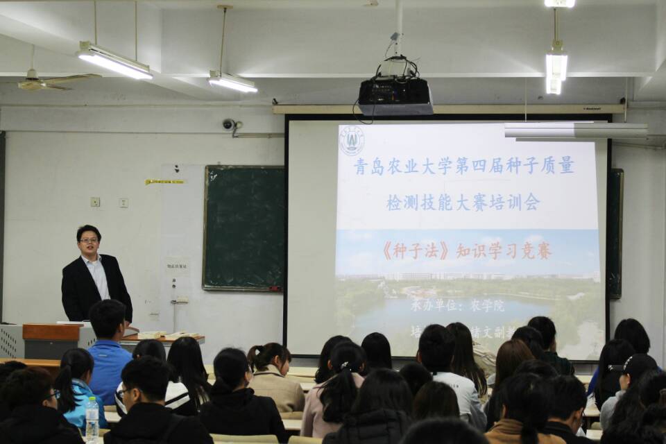 4月10日,农学院在教学楼C区举办青岛农业大学第四届种子质量检测技能大赛之《中华人民共和国种子法》知识学习竞赛培训会。此次培训会由农学院学生会社会实践部主办、种子质量检测技能大赛负责老师江绪文副教授主讲,各学院参赛选手积极参加。