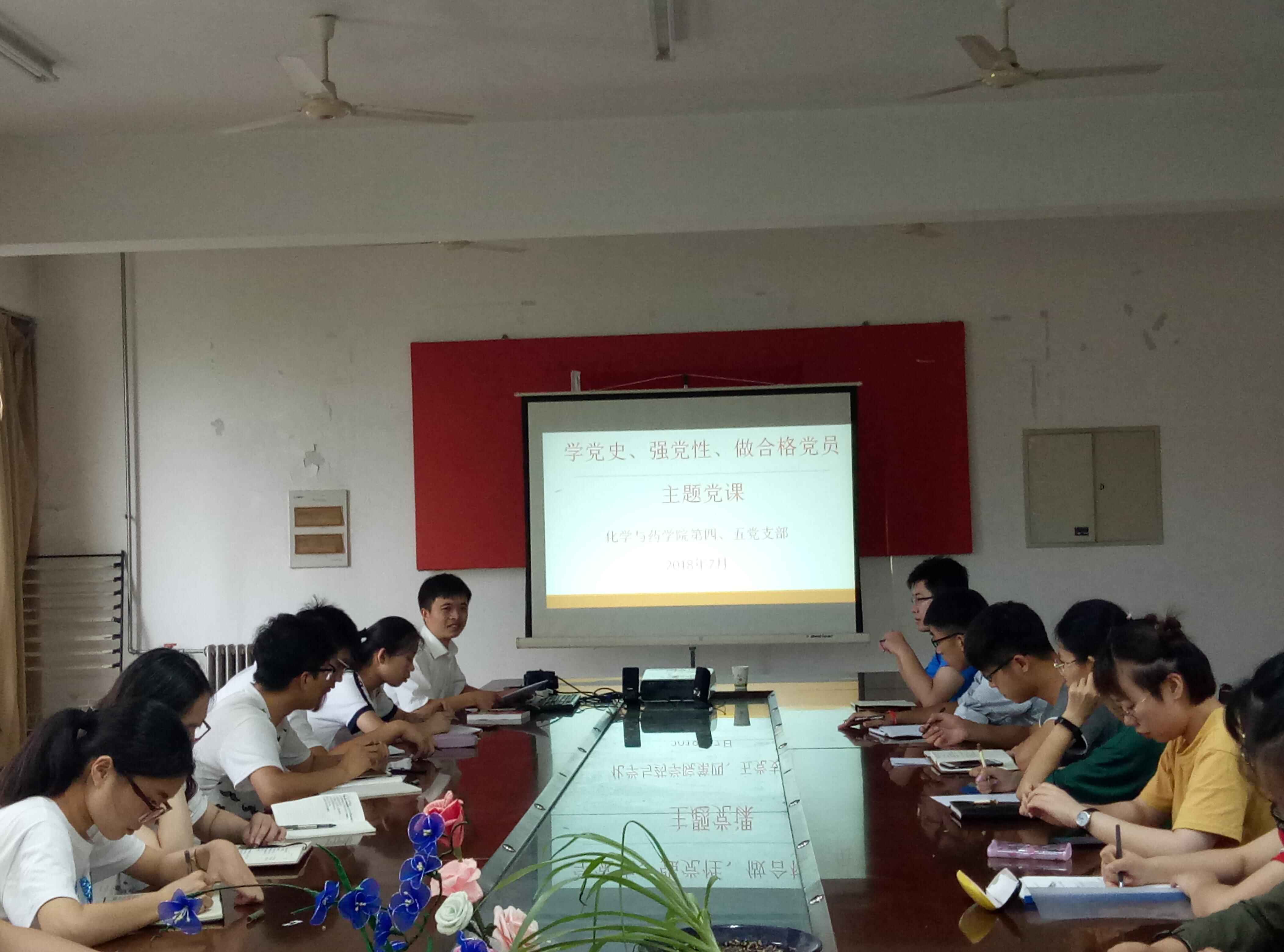 7月9日,化学与药学院第四、五党支部于学院会议室举行支部书记讲党课活动,第五党支部书记杨冬冬为学生党员上了一节“学党史、强党性、做合格党员”主题党课。