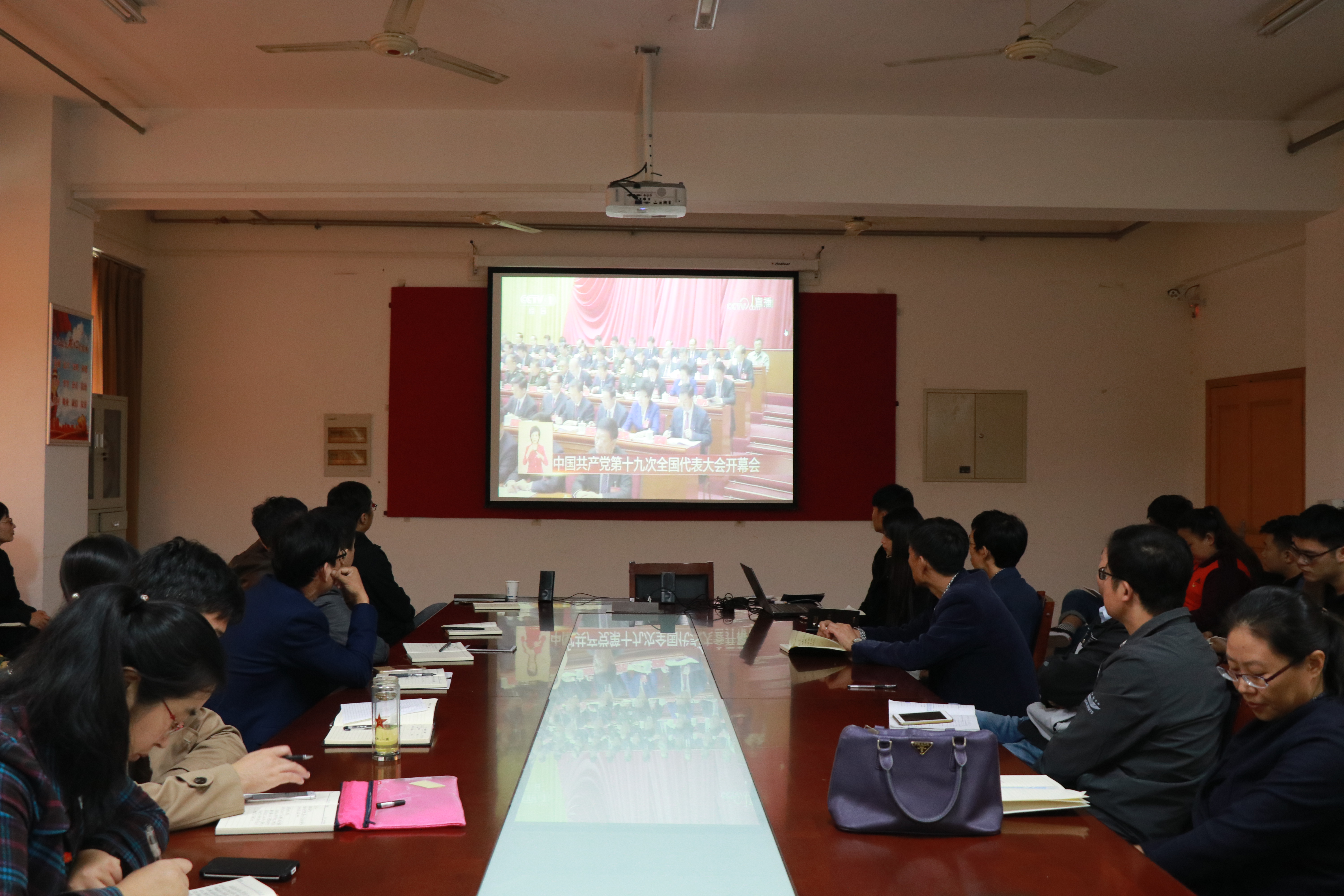 中国共产党第十九次全国代表大会于10月18日上午9时在北京隆重开幕。理学与信息科学学院认真组织全体师生观看了大会直播。在信息楼215,学院全体师生党员集中观看了大会盛况。