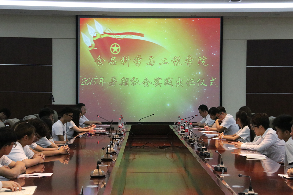 7月6日,青岛农业大学食品科学与工程学院于学术会馆会议室举行2018年暑期社会实践出征仪式。校团委副书记王光炬,学院党委副书记宋伟、团委书记李永青、辅导员赵莹、孙晓东出席会议。