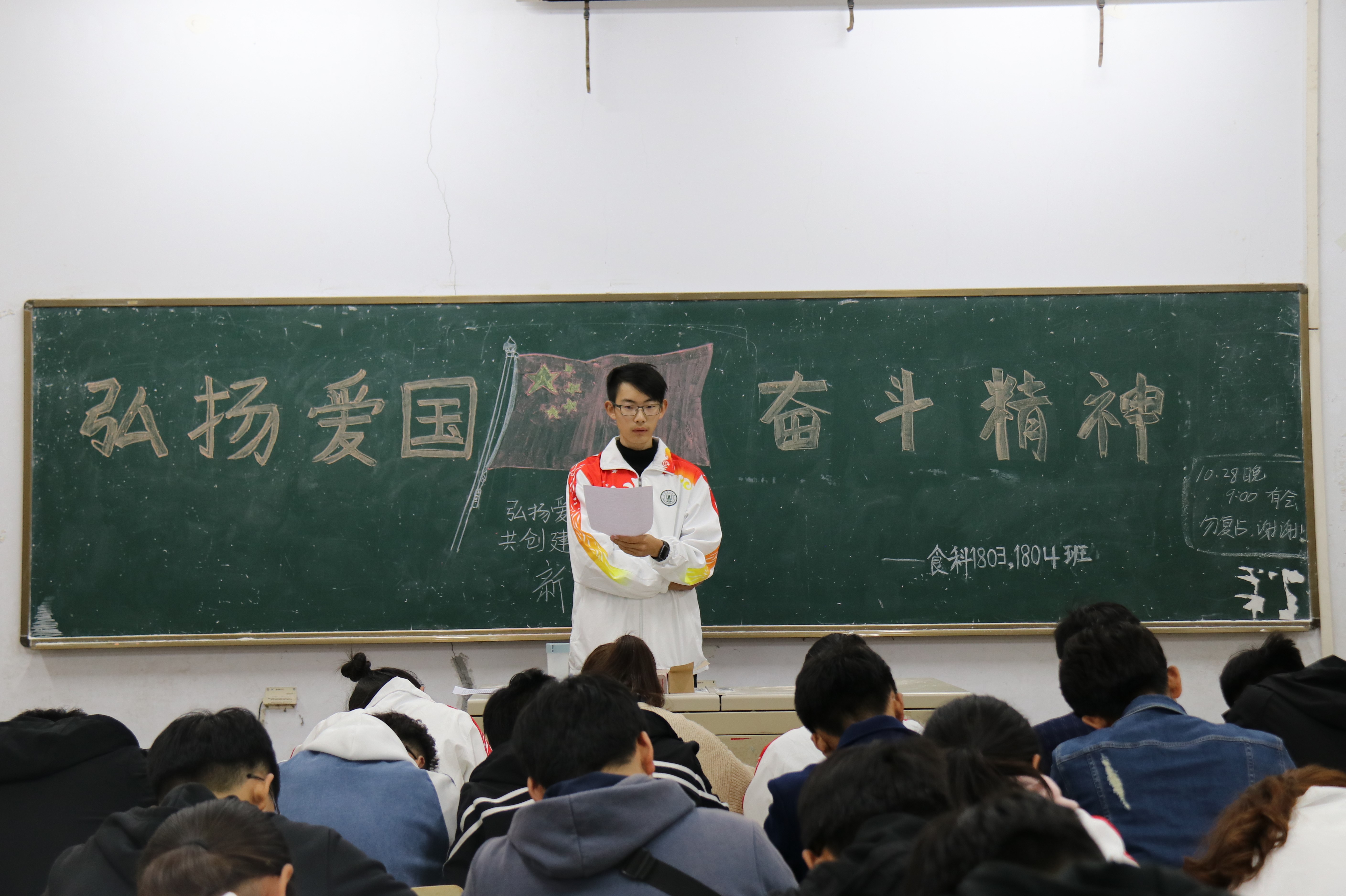 10月28日,青岛农业大学食品科学与工程学院在教学区开展“弘扬爱国奋斗精神、建功立业新时代”主题团课。学院2018、2017级全体参与了此次学习。