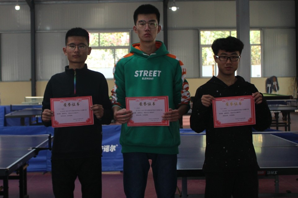 经过激烈的比赛角逐,比赛最终决出了男子单打第一名:动科1807班修子清;第二名:马科1802班李兆龙;第三名D1801侯睿智。女子单打第一名:马科1802班吕艳贞;第二名:D1801班姜越;第三名:动科1801班徐玲花。