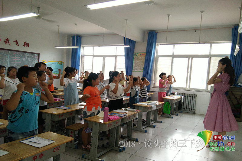 手语课:志愿者在向孩子们分解教学《感恩的心》 中国青年网通讯员 曹西月 摄