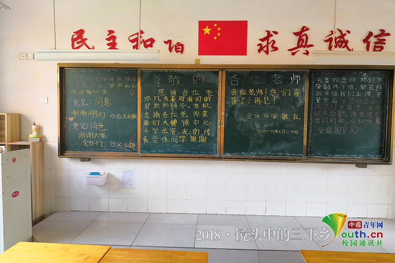 离别:孩子们带来的“惊喜”,一黑板都是满满的感动。中国青年网通讯员 曹西月 摄