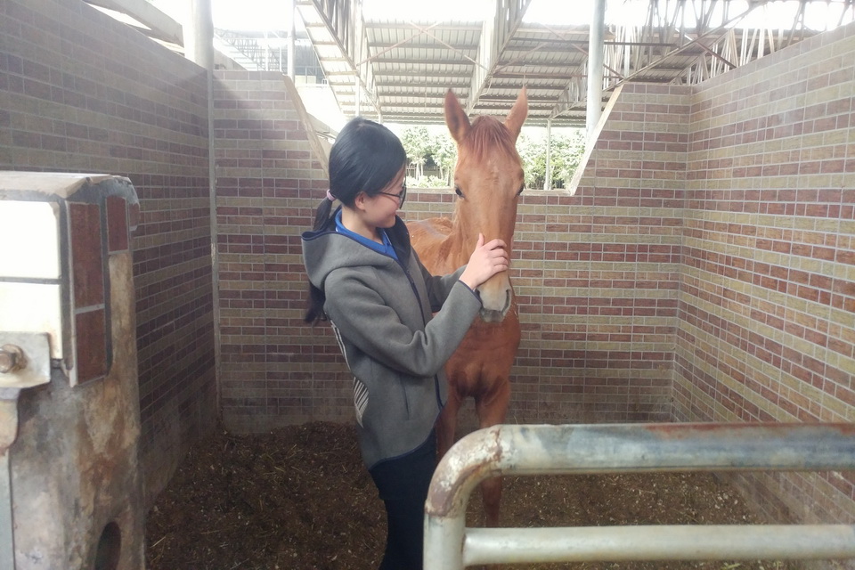 图五:程宝钰同学在深圳骐骥马场正与马匹交流