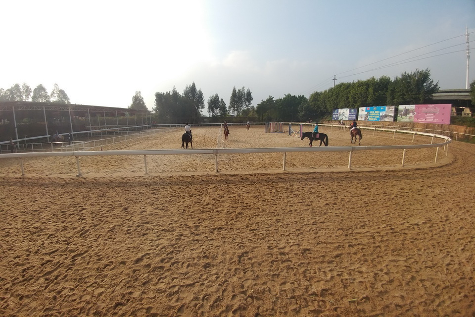 图一:同学们在深圳骐骥马场管理有限公司室外场练习骑马