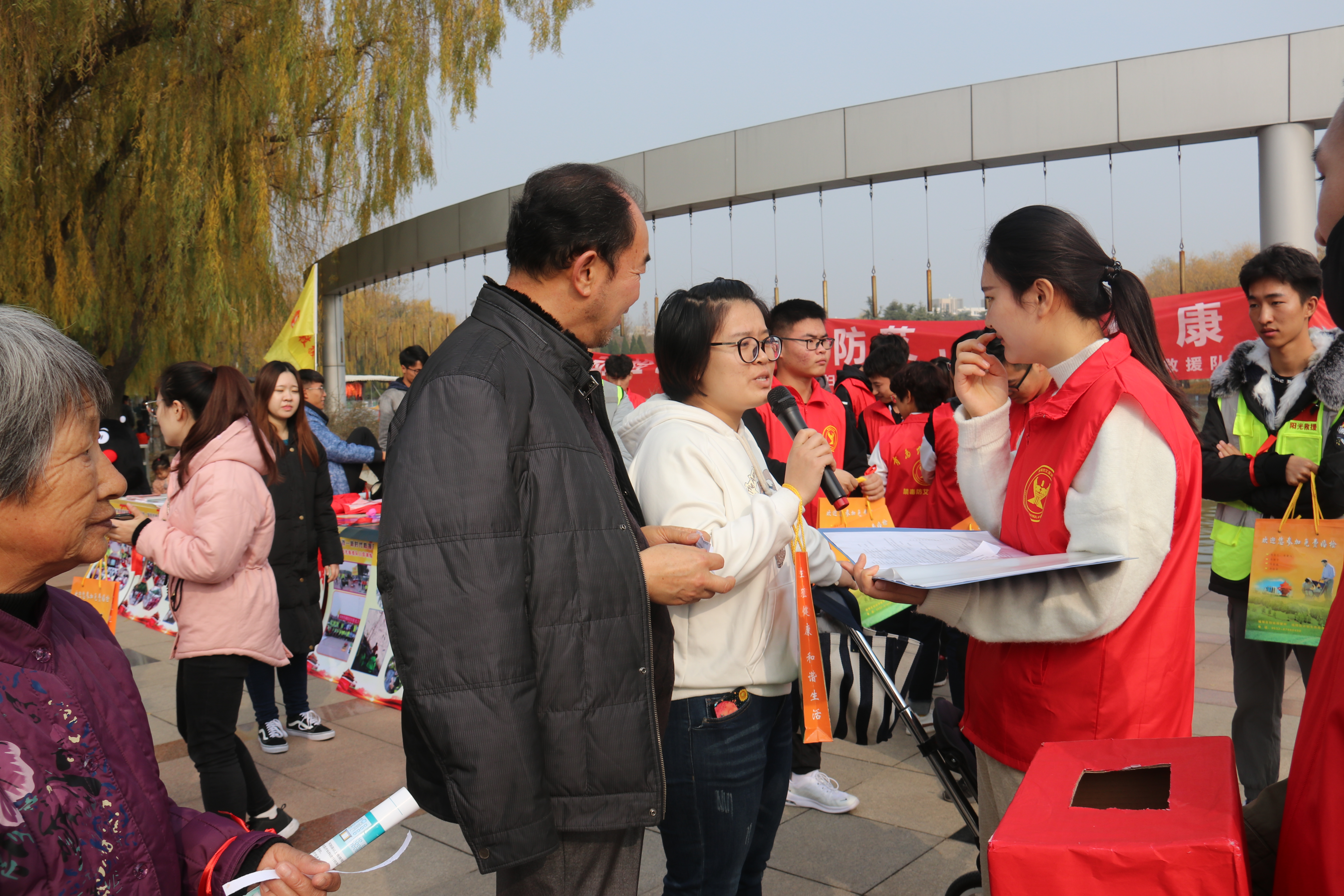 今年的12月1日是第31个“世界艾滋病日”,主题为“知晓自己的感染状况”。为进一步普及艾滋病知识,提升群众防病意识、自我保护意识,当天,青岛农业大学禁毒防艾宣讲团联合青岛市城阳区卫生和计划生育局、疾病防控中心等部门,在青岛奥林匹克文化雕塑园的西门广场开展艾滋病知识宣传活动。