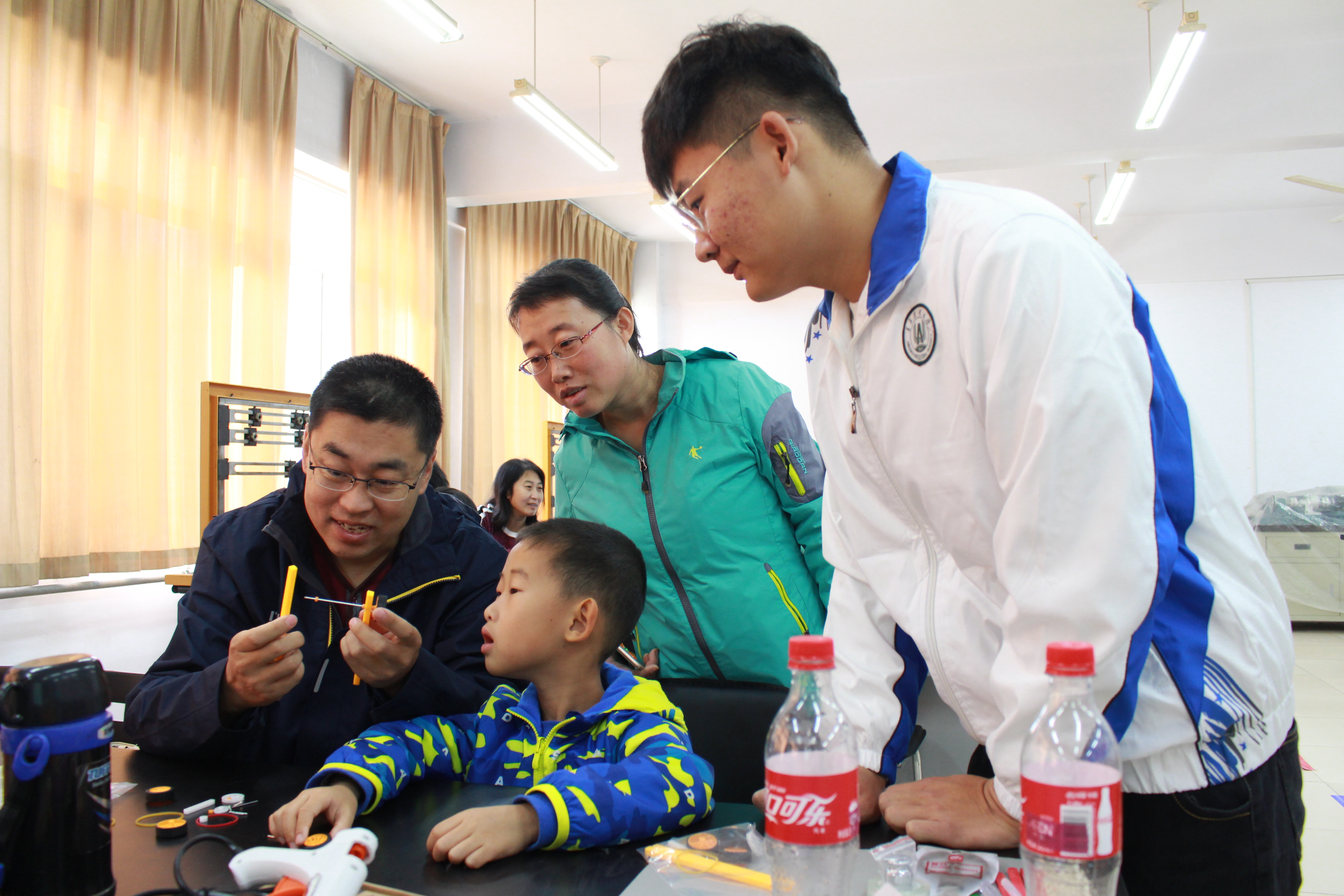 10月28日,由青岛农业大学工会主办、机电工程学院分工会承办的"小小科学家"亲子科技制作活动在工程楼举办。全校20多位教职工与孩子手拉手参加了亲子科技制作。校工会主席贺勇、学院院长尚书旗出席。