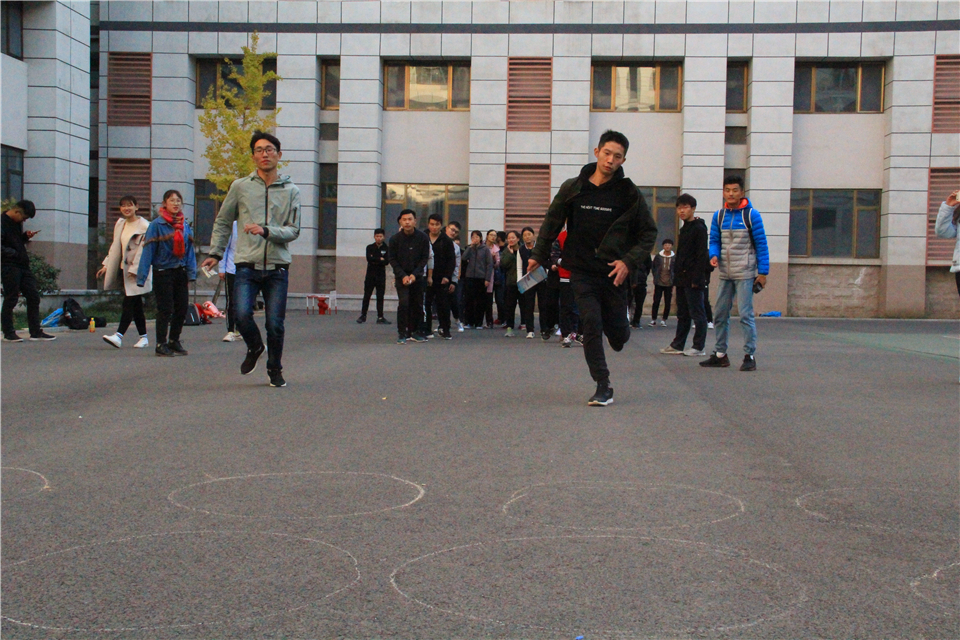 “贪吃蛇大作战”环节中,同学们一只手搭在前一个同学的肩上,另一只手抬起前一个同学的一只脚,原地单腿跳,当一支队伍接上以后一起前进。“这个环节需要组员之间紧密配合才能完成,不仅考验体力和智慧,也考验同学之间的协调性和默契度。只有一支队伍保持一样的速度前进,才能保证‘贪吃蛇’不会从中间断开。”功能材料1702班李新新说道。