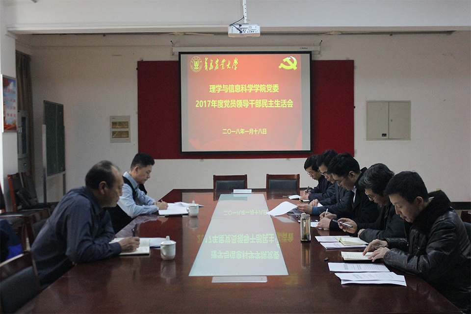 1月18日,青岛农业大学理学与信息科学学院党委于学院会议室召开2017年度党员领导干部民主生活会。会议主题是:认真学习领会习近平新时代中国特色社会主义思想,坚定维护以习近平同志为核心的党中央权威和集中统一领导,全面贯彻落实党的十九大各项决策部署。青岛农业大学党委委员、副校长顾卫东,校纪委办公室主任科员庄福金出席会议。学院领导班子成员参加会议。会议由学院党委书记杨凯主持。