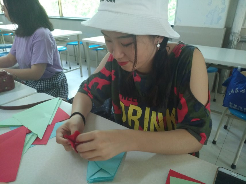 出发前,队员们正在学习折纸,为手工课做准备。