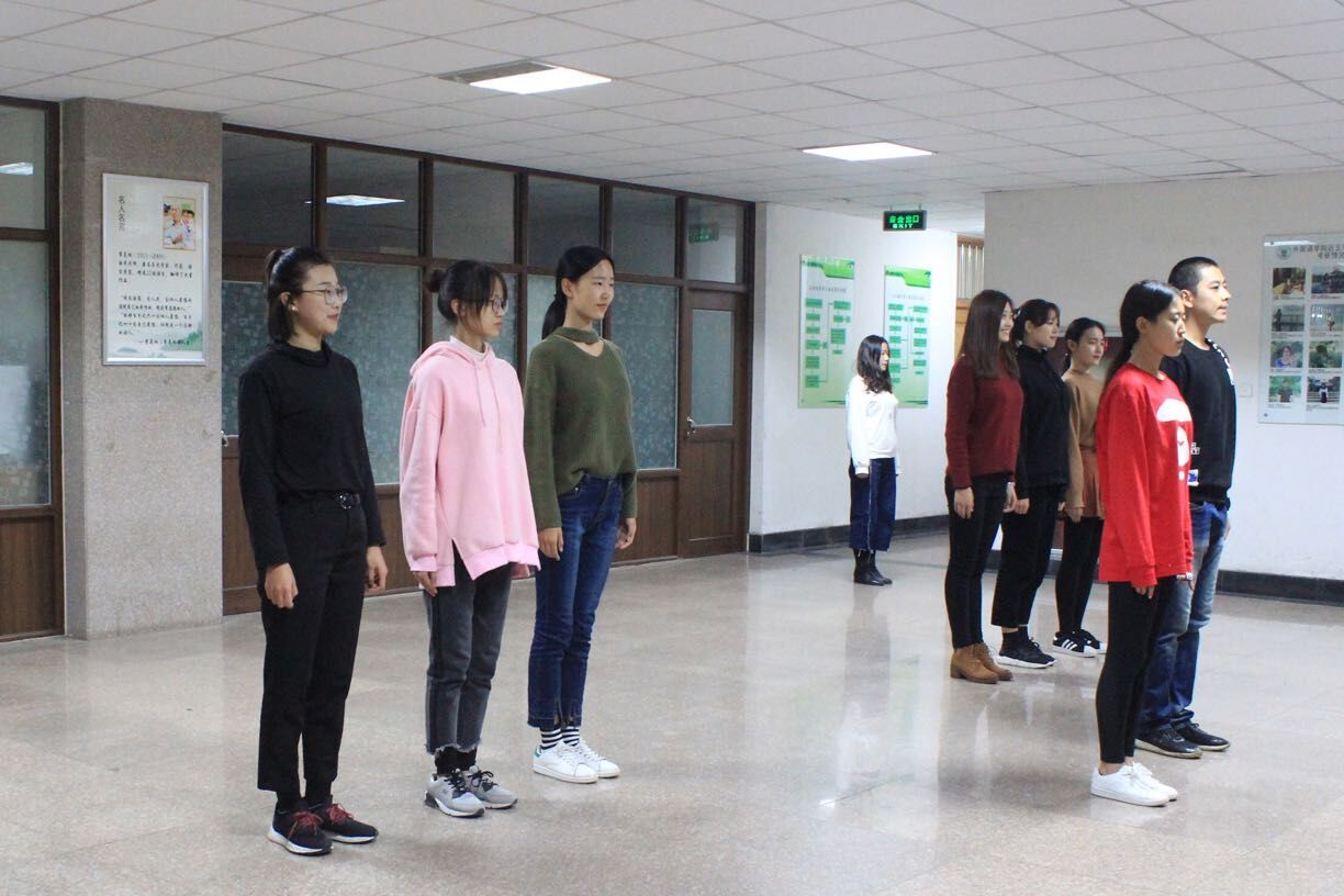 青岛农业大学外国语学院第五届外语节开幕式前夕,各节目排练于文经楼二楼如火如荼地进行着。