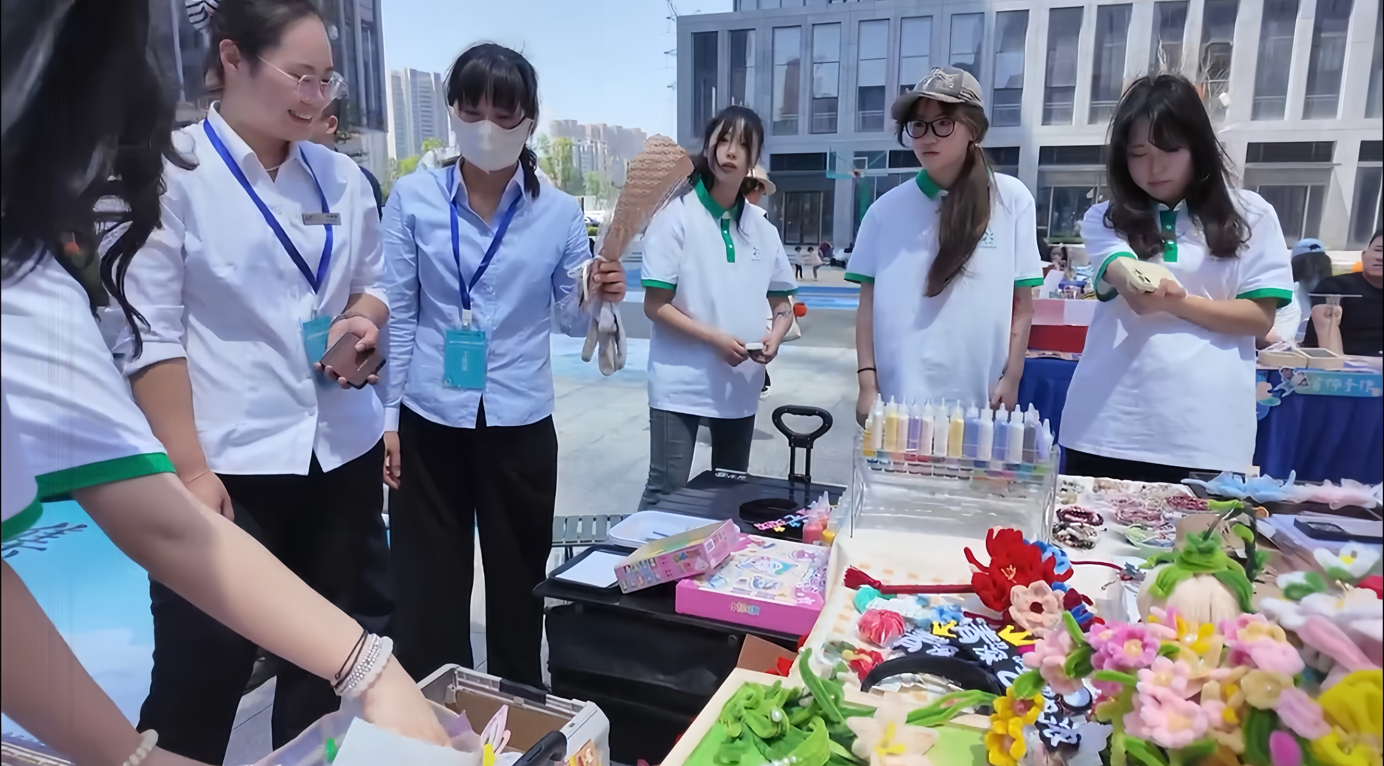 现场,2024级和2023级品牌设计专业联合制作的“春潮扭扭棒”,编织出烂漫花色,受到顾客好评;交互设计2301班与产品设计2301班合作的手工钩织花,将传统手工艺与现代设计理念巧妙融合,兼具实用性和艺术性。其他文创主还展示了多种受时下年轻人喜爱的手作饰品、传统竹编和书法文创等,琳琅满目,各具特色,不仅展示了同学们对传统文化的热爱与传承,更体现了创新思维和艺术创造力。