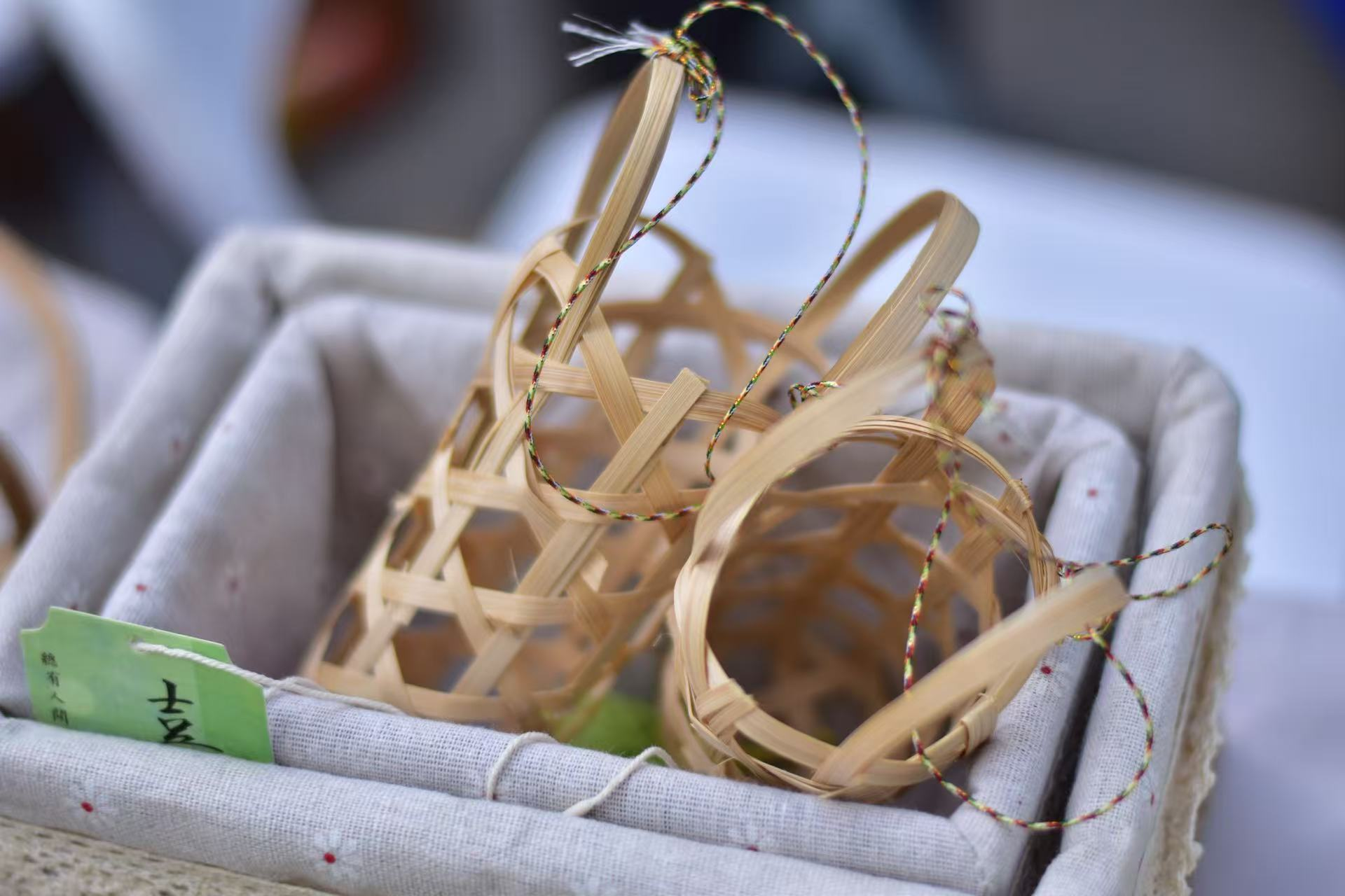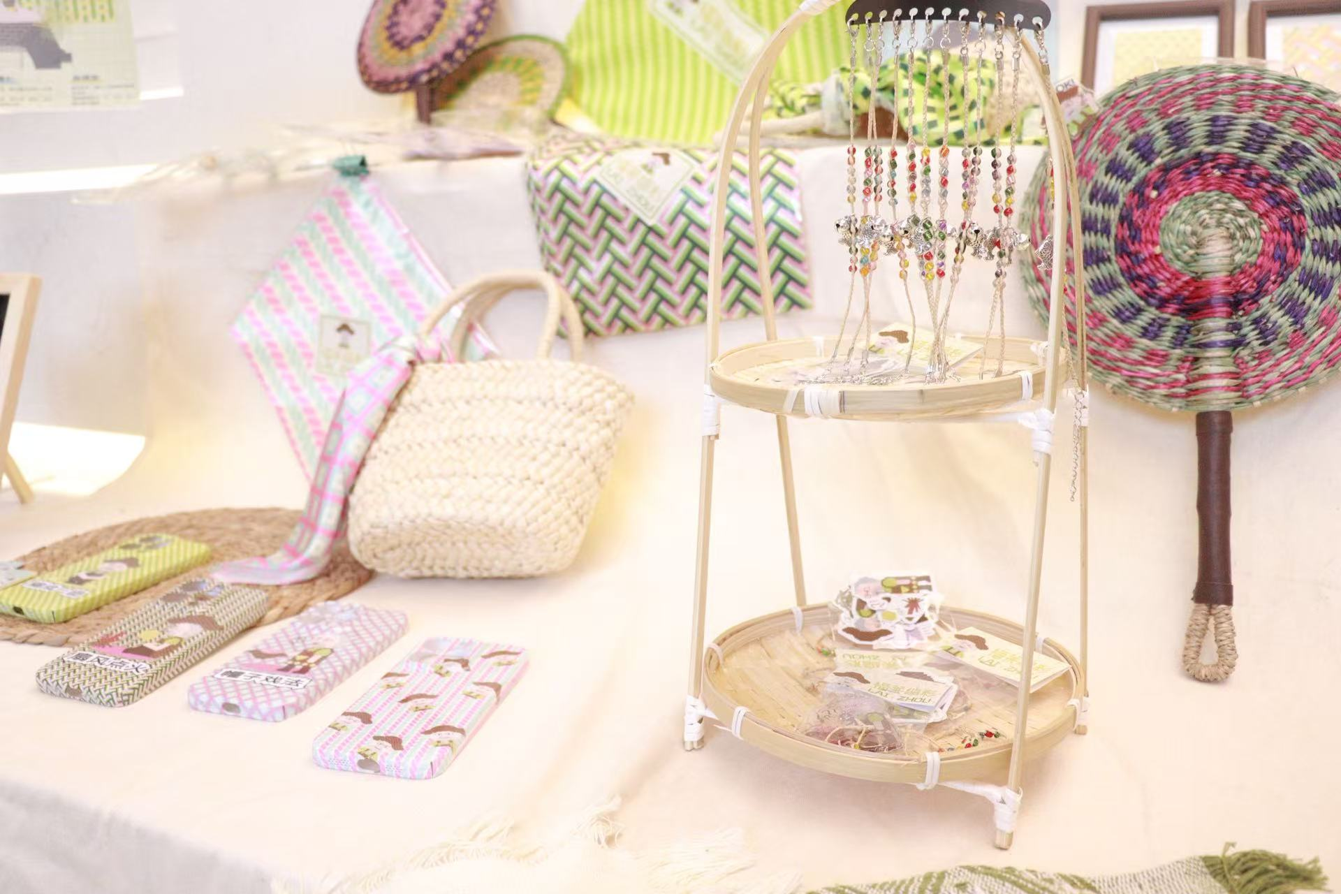 (传统竹编工艺品小摊)